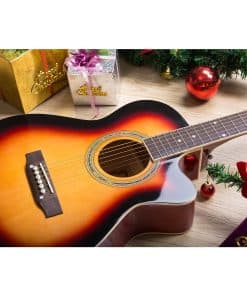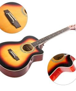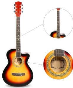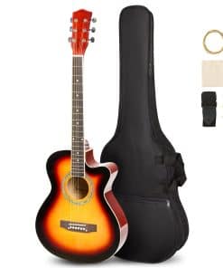 Especificaciones: Tamaño: 39 pulgadas Estilo: Guitarra Acústica con Cutaway Color: Brillante Puesta de Sol Dimensiones del paquete: 39.56 x 17.91 x 4.33 pulgadas Peso de envío: 6.6 libras Materiales: Tapa: Álamo Fondo y Lados: Álamo con ABS Negro Mástil: Arce Diapasón y Puente: Arce Traste: Latón Orientación de la Mano: Diestro Si quieres comenzar tu viaje musical con una excelente guitarra, la guitarra ARTALL cumpliría tus requisitos debido a su calidad adecuada y precio razonable. La guitarra ARTALL de 39 pulgadas es adecuada para adolescentes o principiantes debido a su forma pequeña exquisita e ingeniosa. Esta guitarra presenta un sonido claro y melodioso, que sería impresionante y memorable. Los regalos gratuitos completos te ofrecen una experiencia de primer toque perfecta, lo que te liberaría de buscar piezas una por una. Con su maravillosa calidad de sonido y precio sustancial, esta excelente guitarra merece una recomendación. Acerca de ARTALL: ARTALL siempre se adhiere al principio de que «El Arte para Todo Cliente», nos complace ofrecer a los clientes nuestros atractivos instrumentos en nuestra tienda. Con años de experiencia en la industria de los instrumentos musicales, hemos ganado una alta reputación de los clientes debido a la excelente calidad, el servicio postventa superior y el precio competitivo de nuestros productos. Ponemos gran énfasis en la innovación para garantizar que podamos proporcionar continuamente productos y servicios perfectos a nuestros clientes. Únete a nuestros numerosos clientes satisfechos que ya han comenzado el viaje musical con nuestros magníficos instrumentos. ¡Tú te lo mereces!