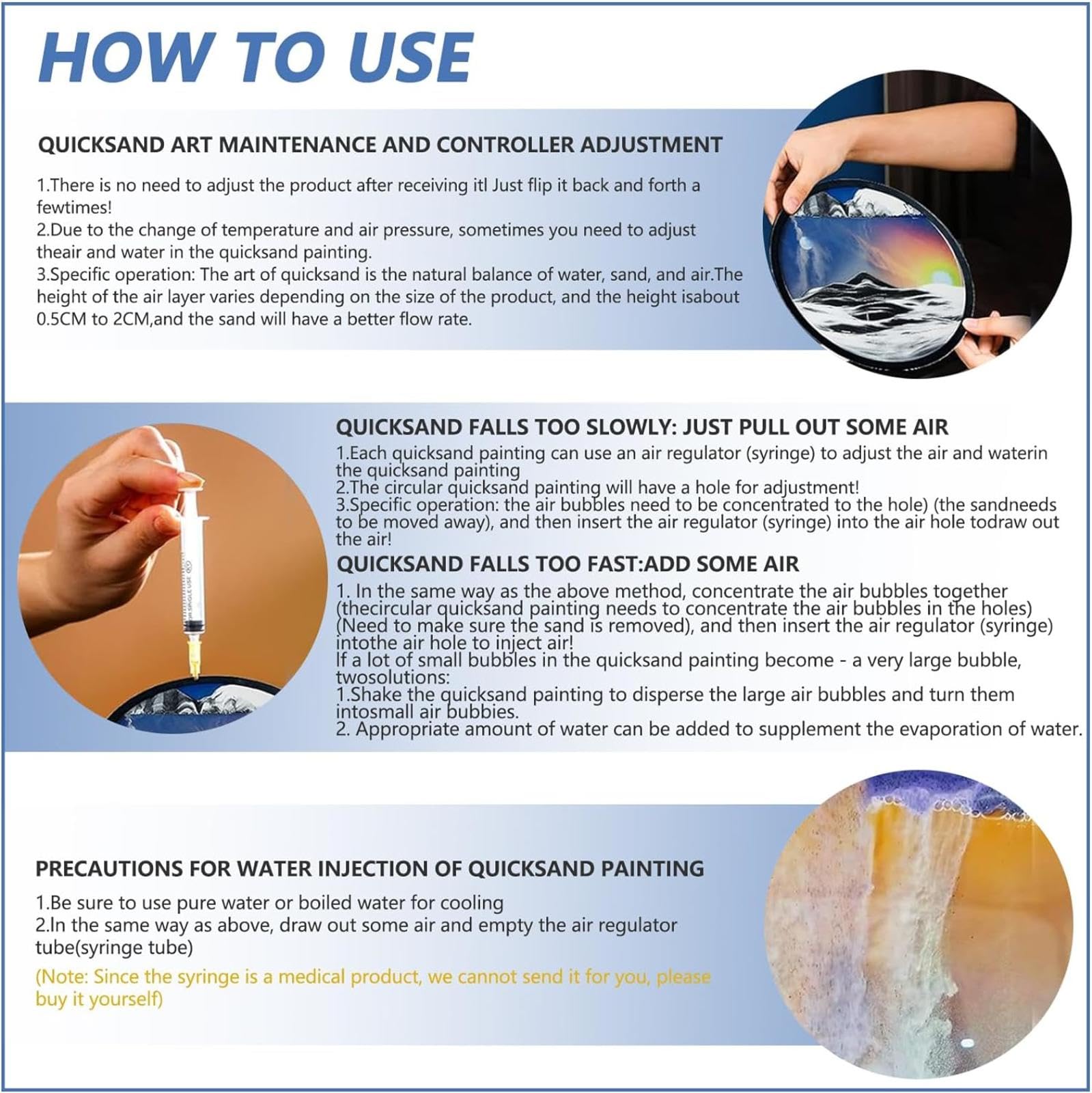Arte en movimiento de paredÚnico de diseño, nuestro arte en movimiento de arena montado en la pared cuenta con un diseño de arena dinámica elaborado por artesanos locales que utilizan arena fina y un marco de madera sólida para su belleza. Los detalles exquisitos y la hermosa combinación de colores lo convierten en una adición elegante y lujosa a cualquier hogar. La característica de rotación de 360° te permite disfrutar plenamente de la belleza de la arena desde cualquier ángulo. El arte de la pared en movimiento aliviar el estrés crea una nueva imagen de arena en cada giro. La arena nunca hace el mismo diseño dos veces. A veces parece un profundo océano, a veces parece altas montañas, y a veces parece un cielo estrellado misterioso. Los gránulos de arena caen lentamente, haciendo que sientas que todo el mundo se vuelve más tranquilo y la presión se libera. Arte en movimiento de líquido de 360 rotación es una obra de arte fascinante y maravillosa. La característica de rotación de 360° te permite disfrutar plenamente de la belleza de la arena desde cualquier ángulo. La arena nunca hace el mismo diseño dos veces. Puedes disfrutar de la belleza artística que aporta la arena, lo que te hace sentir relajado. Fácil de instalar con un gancho diseñado en la parte trasera del arte de la pared en movimiento, la instalación es pan comido. Simplemente perfora agujeros en la pared, fijar el soporte del arte de arena y colgar el producto directamente. Regalo perfecto Los exquisitos arte de pared en movimiento son excelentes regalos, no solo para parejas, sino también para novio y novia, aniversarios, cumpleaños, graduación, Día de San Valentín y otros días importantes. El arte de arena montado en la pared en movimiento es perfecto para desarrollar la apreciación artística y la imaginación. Habrá mucha inspiración en el proceso de apreciación.