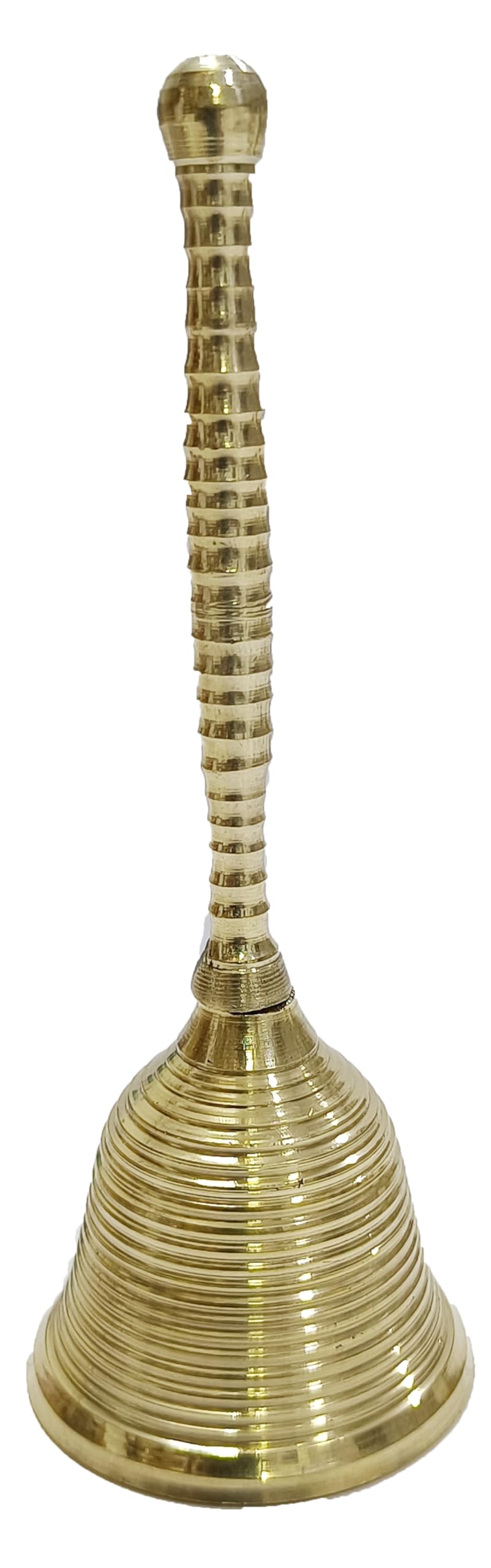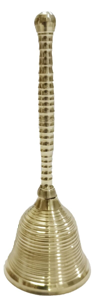 Esta campana de pooja de latón de PARIJAT HANDICRAFT es un hermoso y auspicioso artículo de adoración para tener en tu hogar, oficina o templo. Su meticuloso diseño garantiza que emita un sonido resonante y rico que añade una sensación de calma a tu rutina diaria. La ghanti es una campana india utilizada en rituales hindúes; tiene un badajo unido en el interior que hace que la campana emita un sonido agudo cuando se hace sonar. Esta ghanti de mano grande de 100% de latón hecho a mano es perfecta para poojan, aarti u otros propósitos espirituales. Con dimensiones de 7.5 pulgadas de altura, 3 pulgadas de longitud, 1.2 pulgadas de ancho y un peso de aproximadamente 570 gramos, este producto es fácil de cuidar, simplemente utilice un paño de algodón seco o húmedo para quitar la suciedad. ¡Hazte con esta bellamente diseñada campana de pooja de latón y disfruta de su presencia en tus rituales diarios!