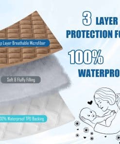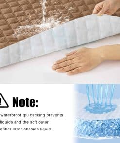 Esta cubierta de colchón impermeable ARYURBU en color marrón está diseñada para camas Queen y proporciona una protección completa alrededor de todo el colchón. La tela transpirable permite que el aire circule, evitando el calor durante el sueño y asegurando una sensación cómoda sin ruidos molestos. La capa impermeable debajo de la suave tela de microfibra de poliéster protege su colchón de líquidos, derrames y sudor, sin comprometer la comodidad. Esta cubierta es fácil de colocar y de cuidar, ideal para niños, adultos y personas mayores. Disfrute de un sueño profundo y reparador con la protector de colchón ARYURBU.