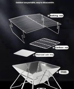 Pasa un tiempo de calidad al aire libre con esta asador de carbón portátil para camping. El asador de carbón incluye una rejilla para carbón, parrilla, soporte y bolsa de organización para su conveniencia. Su diseño plegable instántaneamente te permite plegar fácilmente esta parrilla de barbacoa de carbón en segundos para una portabilidad sin complicaciones. El asador está construído con acero inoxidable de alta resistencia al calor, lo que le permite soportar altas temperaturas con facilidad. Versátil y multi-funcional, esta parrilla es perfecta para acampar, hacer tailgating y picnic, siendo esencial para los entusiastas del aire libre. Úsela como una parrilla de fogata, fogón o para cocinar a fuego abierto, haciendo que sea ideal para diversas actividades al aire libre. Con 5 partes fáciles de montar, construcción resistente de acero inoxidable y fácil limpieza, esta parrilla de camping garantiza una experiencia de barbacoa sin complicaciones cada vez que la uses.