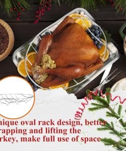 3. Fácil de Limpiar: Se recomienda lavar a mano, nuestra rejilla para horno de pavo no tiene demasiados surcos o lugares difíciles de alcanzar, lo que facilita la limpieza; remojarla en agua caliente durante unos 5 minutos antes de intentar limpiarla; ¡aplique un poco de aceite de cocina en la rejilla antes de usarla y la limpieza será mucho más fácil! Perfecto para Thanksgiving.