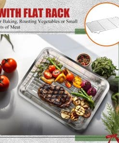 2. Bandeja de Asado de Acero Inoxidable de Alta Calidad con Rejilla para Pavo y Rejilla de Enfriamiento: Esta rejilla para asar ahumador es de construcción sólida, hecha de alambre de acero inoxidable de calidad, y durabilidad duradera. Perfecto para cocinar lenta y asar para Thanksgiving.