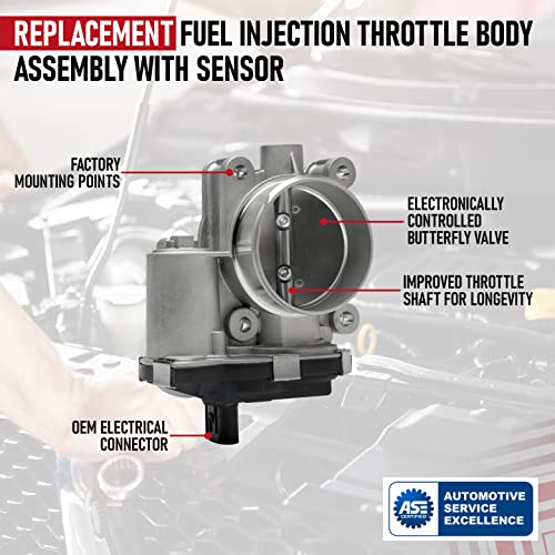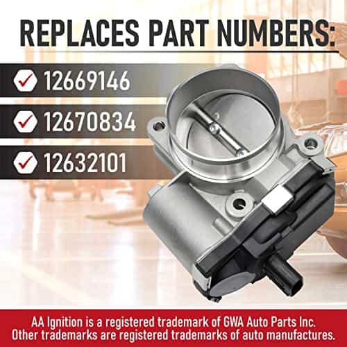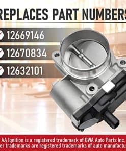 Reemplazo de Asamblea de Cuerpo del Acelerador de Inyección de Combustible con Sensor para vehículos Buick, Chevrolet y GMC con motor 2.4L. Esta asamblea de cuerpo del acelerador es esencial para regular el volumen adecuado de flujo de aire hacia el motor, lo cual es clave para la mezcla correcta de combustible y aire en el motor. Si estás experimentando problemas como caladas del motor, fallas al arrancar, la luz de advertencia electrónica del acelerador encendida, vacilaciones o saltos de potencia al acelerar en tu Lacrosse, Regal, Verano, Captiva, Equinox, es posible que el cuerpo del acelerador esté causando estos problemas y necesite ser reemplazado. Esta asamblea de cuerpo del acelerador de repuesto es compatible con varios modelos de Buick, Chevrolet y GMC, incluyendo Lacrosse, Regal, Verano, Captiva, Equinox, Impala, Malibu, Orlando y Terrain. Reemplace las partes 12632101, 12669146, 12670834 comúnmente encontradas en modelos populares de Equinox, Malibu, Regal, LaCrosse y Terrain con esta asamblea de cuerpo del acelerador de AA Ignition que viene con el sensor del acelerador. El cuerpo del acelerador viejo comúnmente falla debido a la acumulación de carbono y suciedad, por lo que es importante reemplazarlo con este componente de calidad superior que garantiza un ajuste OEM, calidad y acabado. Si alguna vez el cuerpo del acelerador falla en tu Impala, Malibu, Orlando o Terrain, simplemente contáctanos para obtener un reemplazo sin complicaciones. Ahorra tiempo y dinero en comparación con los precios del concesionario comprando esta asamblea de cuerpo del acelerador de AA Ignition y reemplazándola tú mismo.