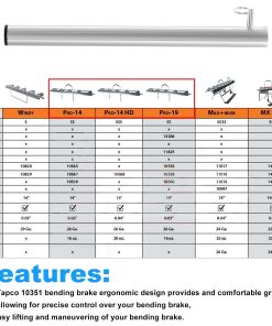 Características: El diseño ergonómico del freno para doblar Tapco proporciona un agarre cómodo, reduciendo la fatiga de la mano durante el uso prolongado y permitiendo un control preciso sobre su freno para doblar.