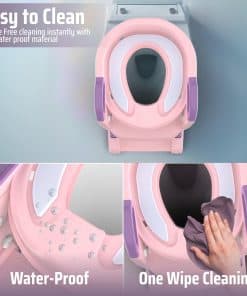 4. ACOLCHADO CÓMODO PARA UN NIÑO FELIZ: Este asiento de entrenamiento para el baño tiene un cojín de asiento de PVC impermeable, brindando una experiencia cálida y cómoda incluso en los meses más fríos. Su diseño ergonómico garantiza la protección de la piel sensible de su hijo, haciendo que el entrenamiento en el baño sea más agradable e higiénico.