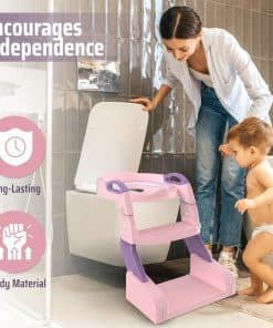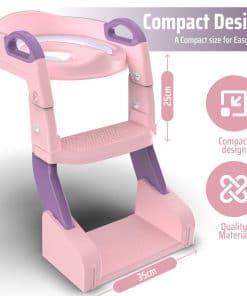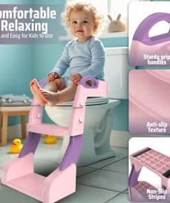 2. NON-SLIP SAFETY FOR PEACE OF MIND: Nuestro asiento de baño para niños ofrece una estabilidad superior en comparación con otras piezas ensambladas con 6 puntos antideslizantes en la base de la escalera y 7 en la parte inferior del asiento. La goma antideslizante del asiento del baño para niños evita movimientos innecesarios, asegurando la seguridad y estabilidad de su hijo durante el entrenamiento en el baño y tranquilidad en cada momento en el baño.