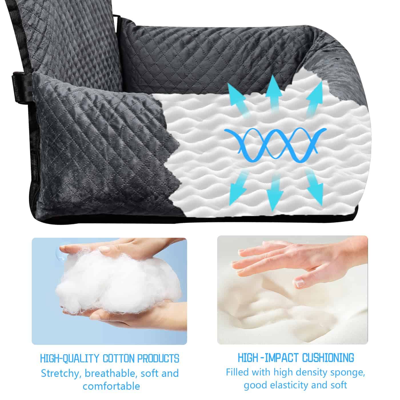 2. Materiales de primera calidad para comodidad y durabilidad Nuestro cama de coche para perros está fabricada con lujosa tela de felpa holandesa que es increíblemente suave y reconfortante para tu mascota. La costura fuerte resiste el desgarro mientras que el cojín inferior de espuma de alta resilencia proporciona protección articular.