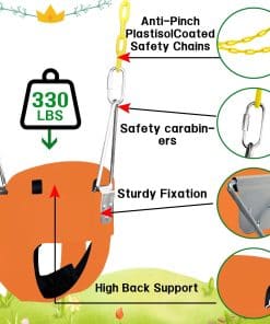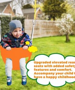 El asiento de columpio para niños pequeños está cuidadosamente diseñado para bebés de 6 a 24 meses, equipado con un cinturón de seguridad de tres puntos para garantizar que el bebé siempre se siente de forma segura en el asiento durante el proceso de columpio, evitando eficazmente caídas. El columpio para bebés está hecho de polietileno resistente que puede soportar diversas condiciones exteriores, brindando alegría y disfrute duraderos a los bebés. El columpio de cubo viene con una cadena de 66 pulgadas, de las cuales 31 pulgadas tienen un recubrimiento amarillo destacado. Durante el juego del bebé, ofrece la máxima comodidad y seguridad. Los columpios de balde para niños pequeños son ampliamente aplicables y se pueden instalar en columpios, debajo de árboles, en terrazas o techos interiores. La instalación es extremadamente sencilla y el asiento de columpio para niños pequeños incluido viene con 4 ganchos, lo que le permite conectar fácilmente cadenas y ganchos, haciendo que la instalación y la…tamiente más convenientes.