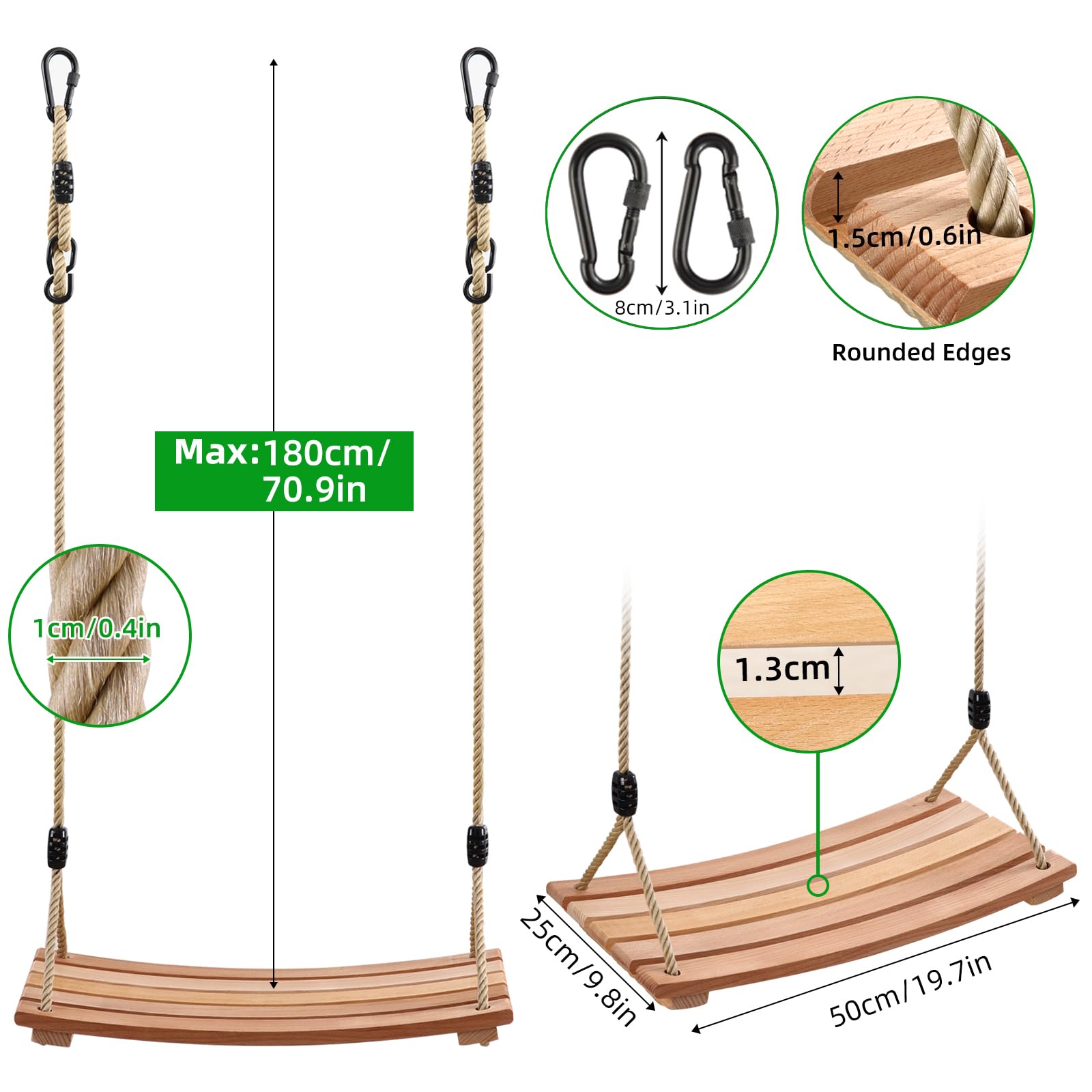 1. RECOMENDADO PARA USO AL AIRE LIBRE: Nuestro columpio de árbol de madera está diseñado con un asiento antideslizante y lados elevados. Cuerda ajustable de 120 cm a 180 cm, anillos y accesorios de metal galvanizado. ¡También se puede colgar de una rama de un árbol o de una viga! Asiento de columpio de madera colorido y resistente tanto para adultos como para niños que ofrece diversión, calidad y gran valor.