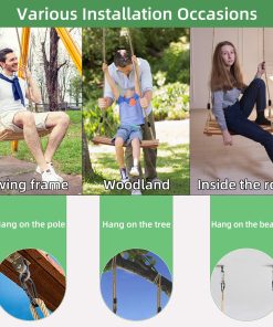 4. FÁCIL INSTALACIÓN: ¡No se necesitan herramientas de hardware para instalar estos juegos de columpios! ¡Muy fácil de instalar! Primero, elija las ramas de un árbol de madera dura resistente, ¡los robles son ideales! Evite los árboles frutales, siempreverdes o árboles que se dividen fácilmente. Luego, ate la cuerda o las correas en el kit de suspensión alrededor de la rama del árbol y ajústelo al ángulo deseado. ¡Listo! ¡Qué gran diversión para su jardín!