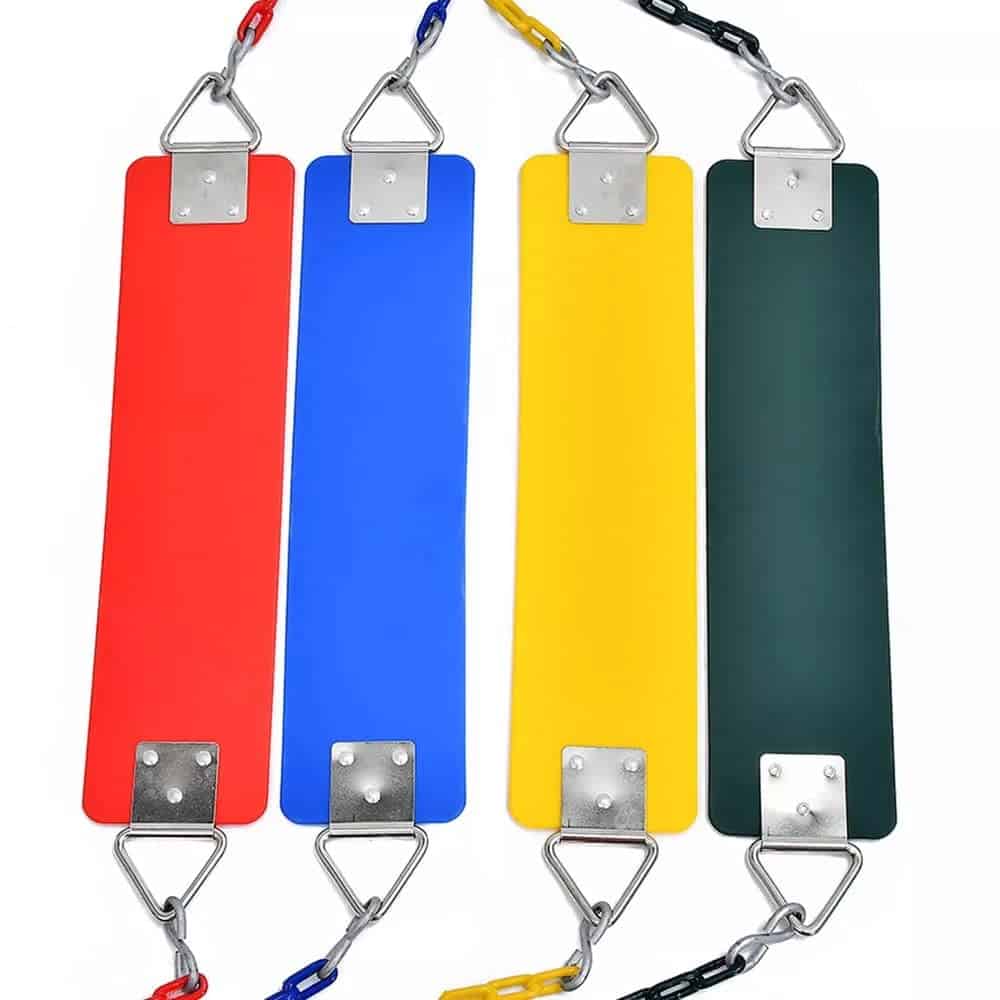 El columpio resistente REZNOR está clasificado para soportar hasta 150kg. Completo con una cadena de 60″ y un cómodo asiento de columpio con anillo metálico triangular. Simplemente engancha los ganchos a la cadena y luego al juego de columpios ¡y estarás listo para comenzar!