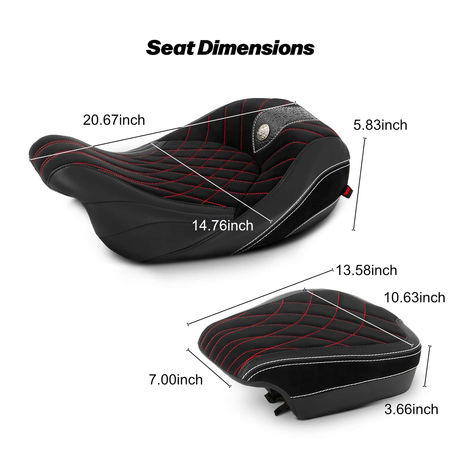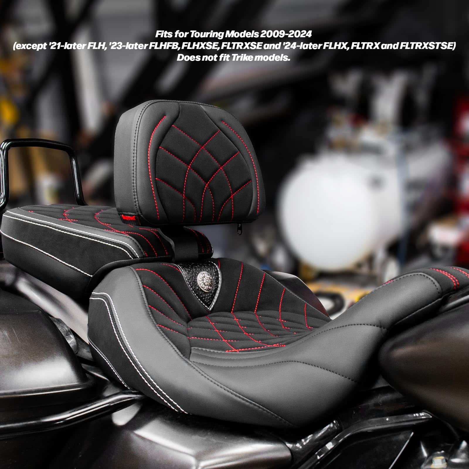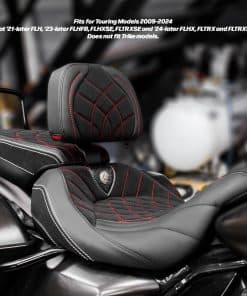 1. COMPATIBILIDAD: El kit de asiento y respaldo personalizado de bajo perfil se ajusta a los modelos Harley Touring Road King Street Glide Road Glide Electra Glide 2009-2024 (excepto modelos FLH de ’21 y posterior, FLHFB de ’23 y posteriores, FLHXSE, FLTRXSE y modelos FLHX, FLTRX y FLTRXSTSE de ’24 y posteriores). No compatible con modelos Trike.