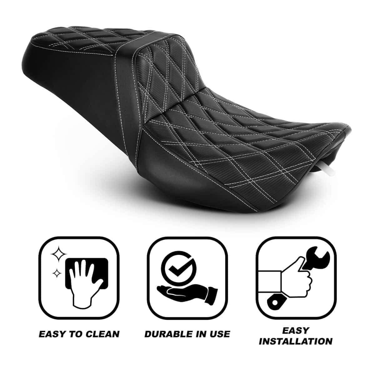 2. DISEÑO INNOVADOR Y ERGONÓMICO – El asiento VASTMT para Harley Touring está hecho con una combinación de espuma con una cantidad adecuada de material de silicona para lograr una experiencia de conducción más cómoda. El espacio generoso cuenta con un sistema de suspensión de tablero de resortes para un 15% de mejora en la comodidad de conducción.
