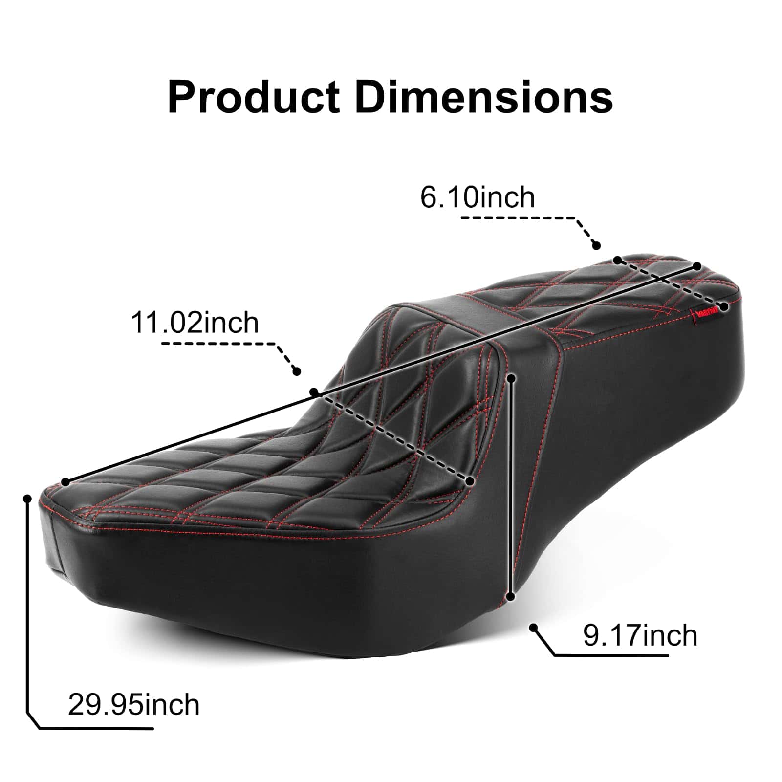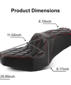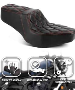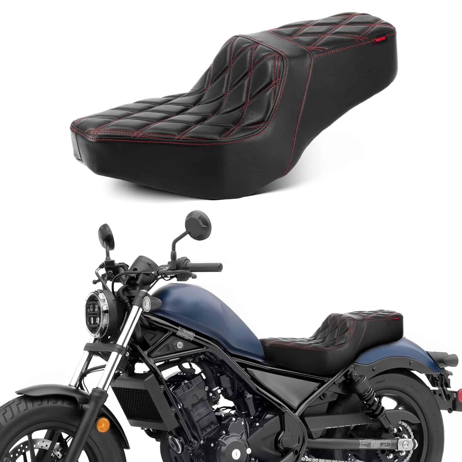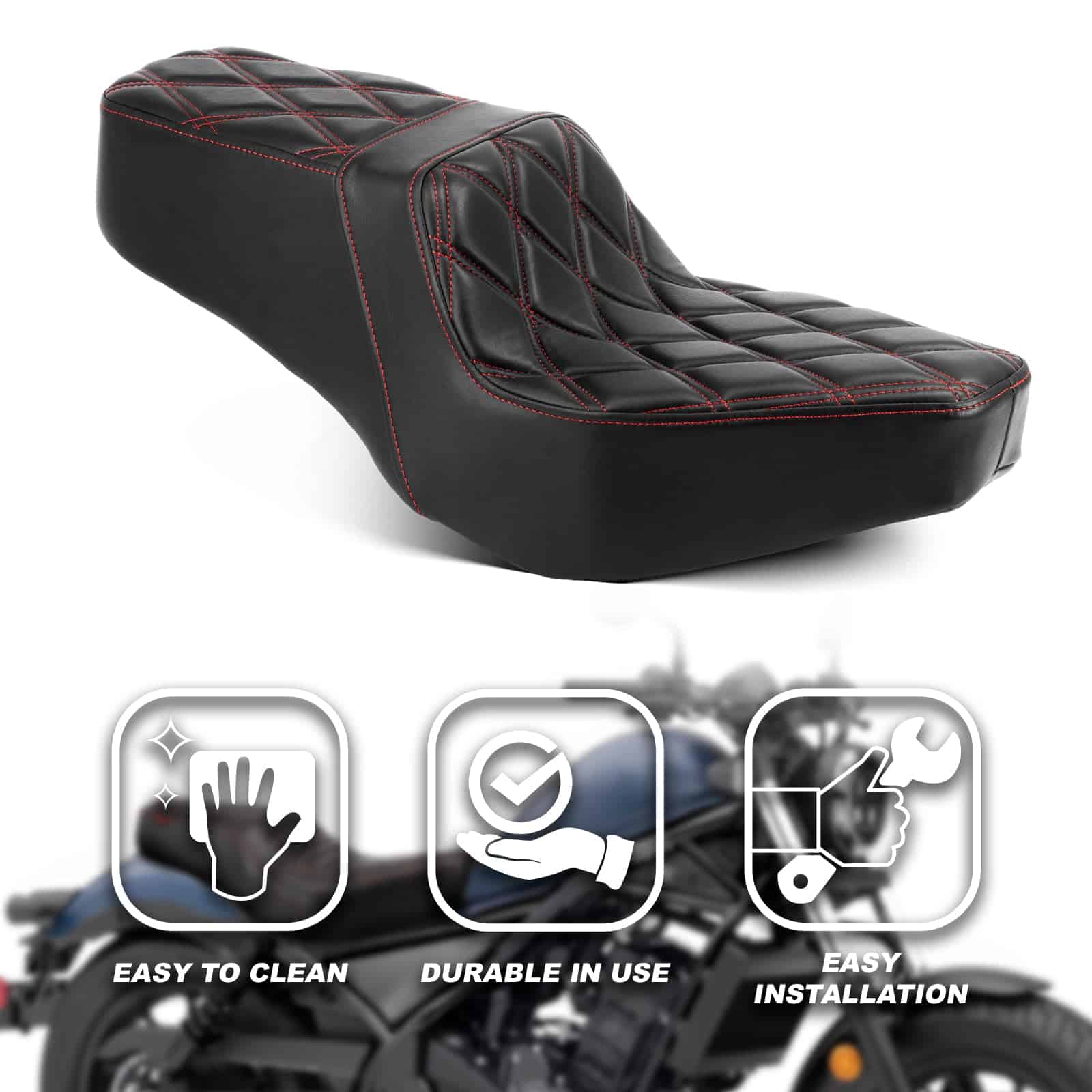 Descripción de Asiento de Conductor y Pasajero de una Pieza VASTMT con Patrón de Costura de Diamante para Honda Rebel CMX 300 CMX 500 2017 2018 2019 2020 2021 2022 2023: Este asiento único de conductor y pasajero de una pieza de la marca VASTMT ha sido diseñado para adaptarse a los modelos de Honda Rebel CMX 300 CMX 500 de los años 2017 a 2023. Con una parte inferior de material Nylon de alta resistencia, este asiento es duradero y resistente al envejecimiento. La costura de patrón de diamante le otorga un aspecto elegante y sofisticado. La generosa espaciosidad tanto para el conductor como para el pasajero, junto con el sistema de suspensión de tabla de resorte, garantiza una experiencia de conducción cómoda. La seguridad no se queda atrás, ya que la suspensión interna evita el fondo y mejora significativamente la comodidad y resistencia a largo plazo. Este asiento está construido para satisfacer las necesidades del motorista, proporcionando un amplio soporte lumbar y manteniendo al operador en una posición segura durante el trayecto.