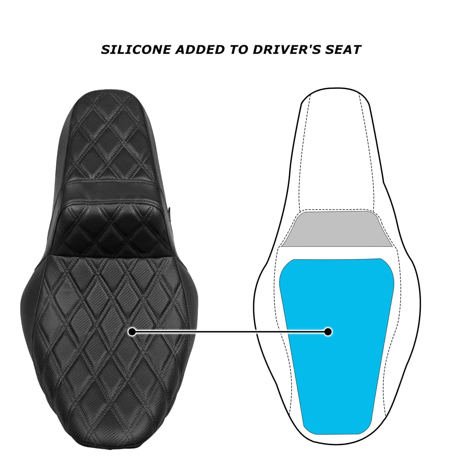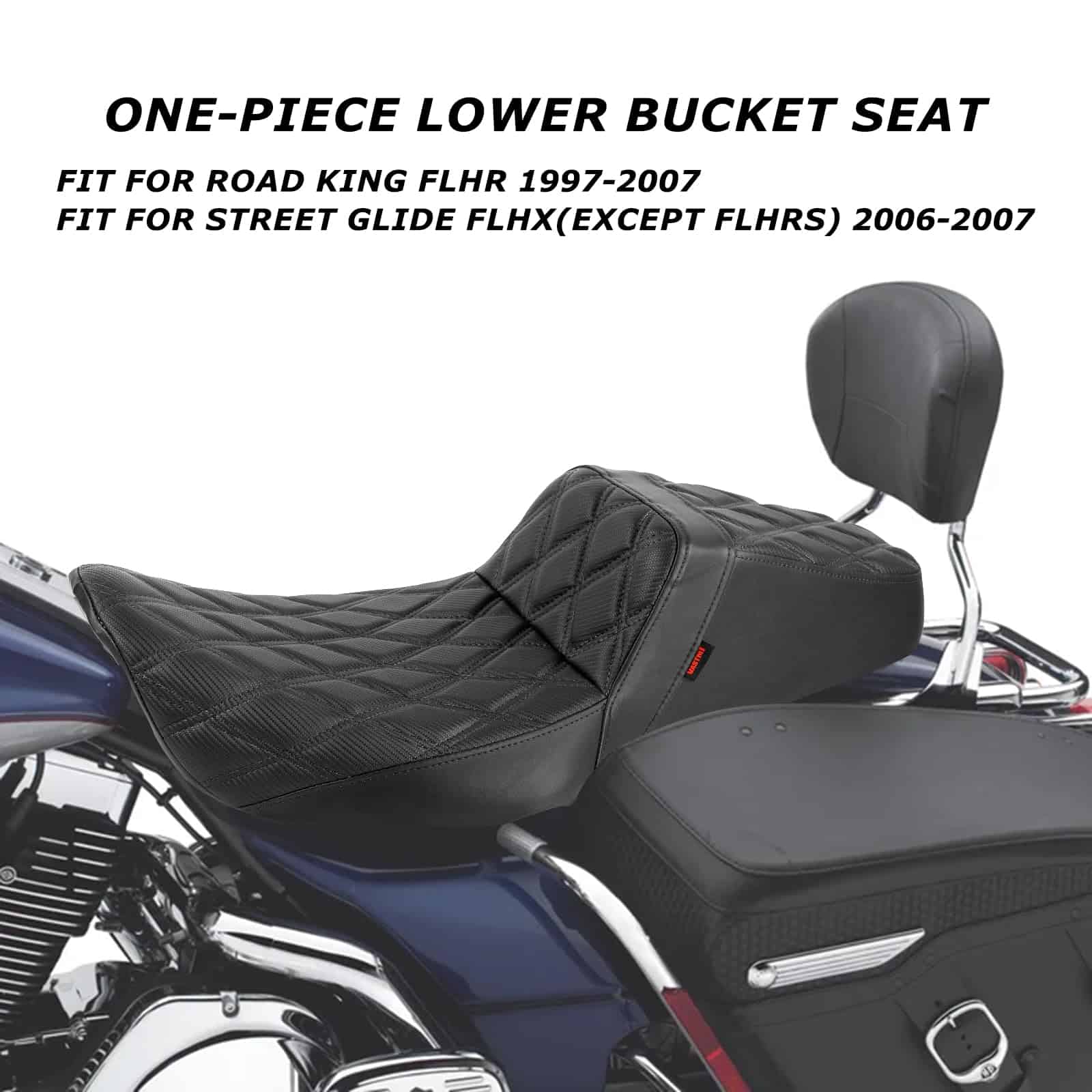 1. Ajuste: Apto para Harley Road King FLHR 1997-2007; Apto para Harley Street Glide FLHX 2006-2007 (EXCEPTO FLHRS). 2. Calidad premium: Material: Cuero + Espuma + Silicona + Hierro + Plástico PP; Color: costuras rojas/negras/blancas disponibles; Ancho delantero: 12″. Ancho trasero: 7.5″. 3. Asiento para largas distancias: El cojín del asiento del conductor agrega silicona suave y asientos de cubo grandes diseñados para mantener al conductor y pasajero en la suprema comodidad durante viajes de larga distancia. 4. Instalación fácil: Este cojín de asiento es muy fácil de instalar, puedes instalar este cojín de asiento en menos de 1 minuto. Y viene con el hardware necesario. 5. Paquete: 1 pieza asiento de conductor y pasajero y hardware.