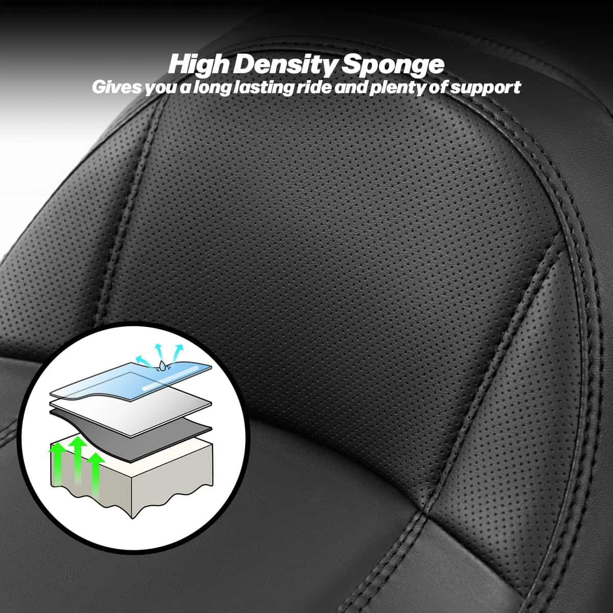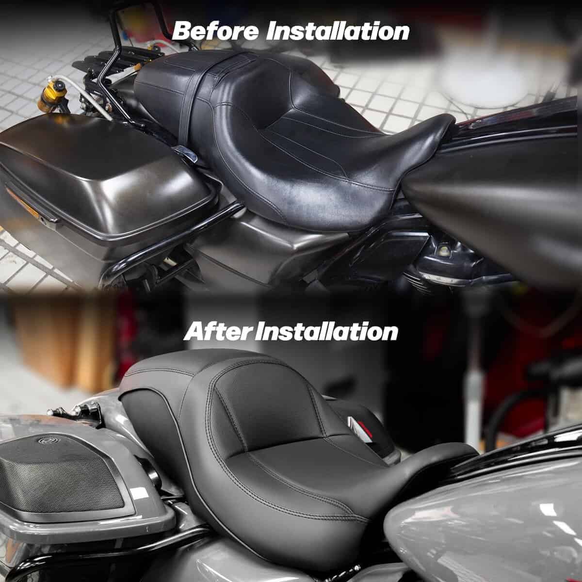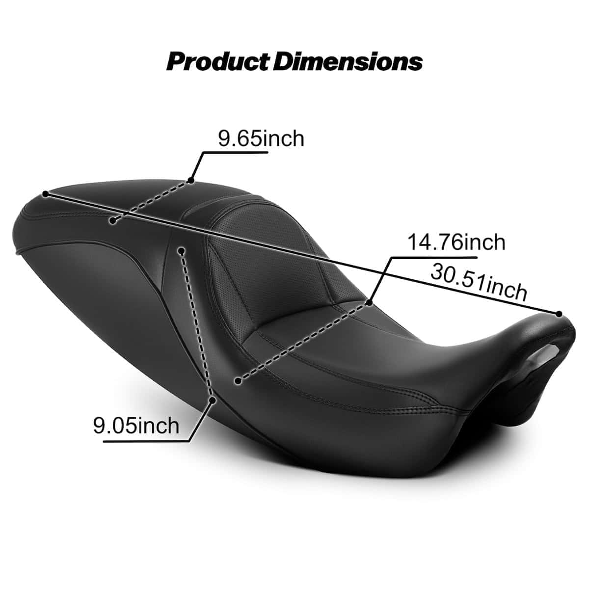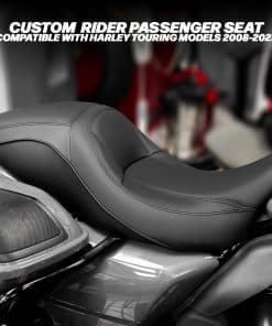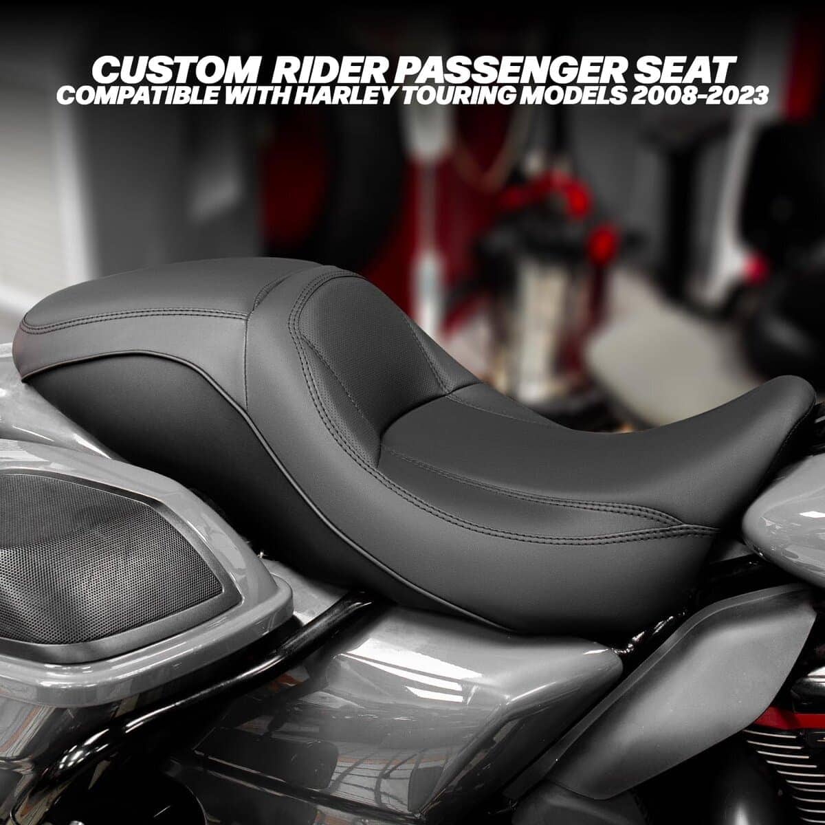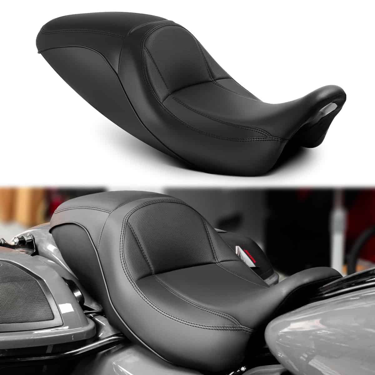Este asiento de conductor y pasajero de una pieza está diseñado para adaptarse a los modelos Harley Touring Street Glide Road Glide Road King Electra Glide 2008-2023. Fabricado con vinilo de alta calidad y esponja de alta densidad, este asiento proporciona soporte y comodidad durante largos paseos. El asiento del conductor cuenta con material de silicona suave para una experiencia de conducción aún más cómoda. Además, el asiento tiene una forma ligeramente de cubeta para permitir variar la posición de conducción hacia adelante y hacia atrás. Acepta respaldo de piloto (se vende por separado) para una comodidad adicional en viajes largos. El asiento del conductor tiene un ancho de 15″ y el asiento del pasajero tiene un ancho de 10″. El paquete incluye 1 asiento de conductor para pasajero y el hardware necesario.