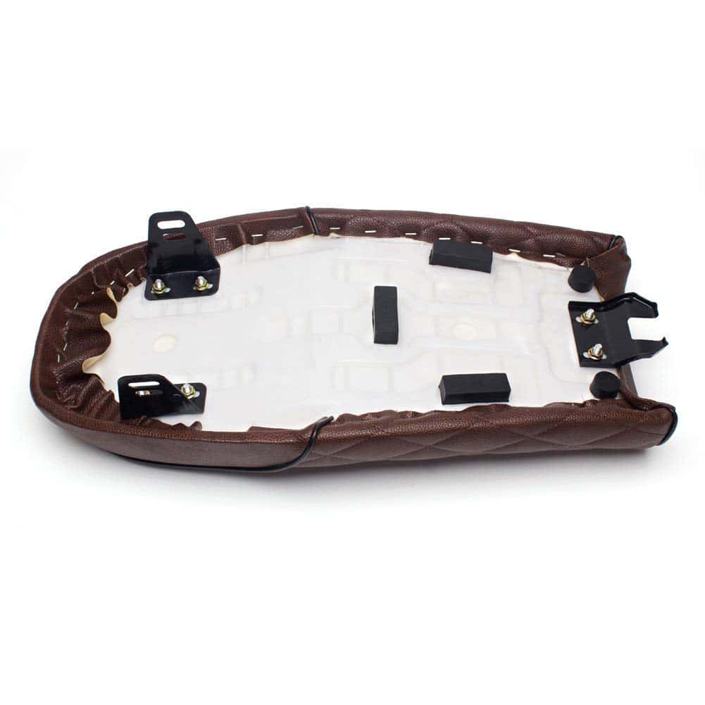 Este asiento está acabado en un cuero sintético rústico y ribeteado para darle una sensación vintage que puede completar instantáneamente el aspecto de cualquier reconstrucción o moto personalizada.