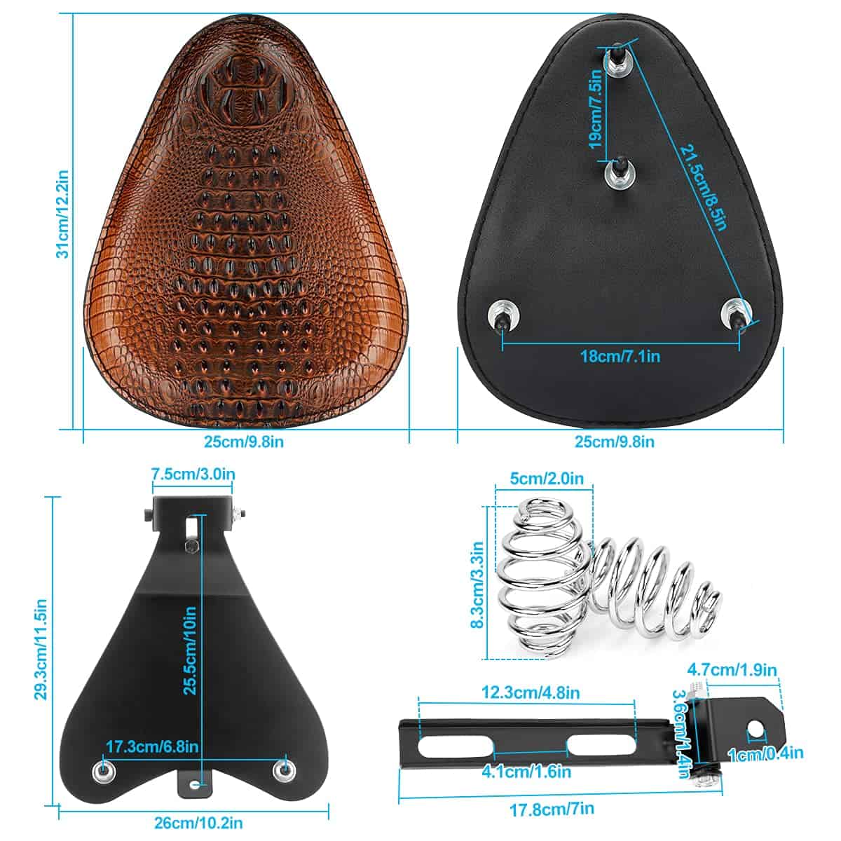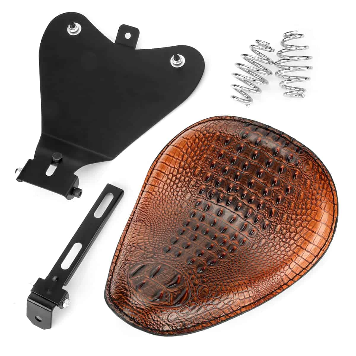 Especificación: Material: Cuero sintético, soporte de montaje resistente y resortes Altura del Resorte: 3 Tamaño del Asiento (L x A): Aproximadamente 13 3/4 x 11 5/8 Longitud del Soporte: Aproximadamente 7¡Por favor, asegúrate de que esta parte sea compatible con tu motocicleta antes de ofertar!. Característica: Es perfecto para personalizar tu moto, el asiento suave ofrece un paseo cómodo. Viene con soporte de montaje y resortes, los resortes tienen una excelente absorción de impactos. Fácil de instalar, no incluye instrucciones. Compatibilidad: Compatible con Harley Honda Yamaha Kawasaki Suzuki Sportster Bobber Chopper y aplicaciones personalizadas. Perfecto para Harley Sportster XL883/1200. Se ajusta a: Compatible con Harley-Davidson Heritage Softail 2007-2013 Compatible con Harley-Davidson Road Glide 1998-2013 Compatible con Harley-Davidson Road King 1998-2014 Para Harley-Davidson Softail 1984-2016 Compatible con Harley-Davidson Softail Springer 1991-2009 Compatible con Harley-Davidson Sportster 883 1990-2013 Compatible con Harley-Davidson Street Glide 2006-2014 Compatible con Harley-Davidson Super Glide 1983-1994 1999-2000 Compatible con Harley-Davidson Sportster 1200 2004-2016 Compatible con Harley-Davidson Fatboy 2004-2011 Compatible con Harley-Davidson Cross Bones 2008-2011 (¡POR FAVOR, VERIFICA EL TAMAÑO Y ASEGÚRATE DE QUE SE AJUSTE A TU MOTO ANTES DE HACER EL PEDIDO. GRACIAS!) Paquete incluido: 1x Asiento individual 1x Soporte 2x Resortes