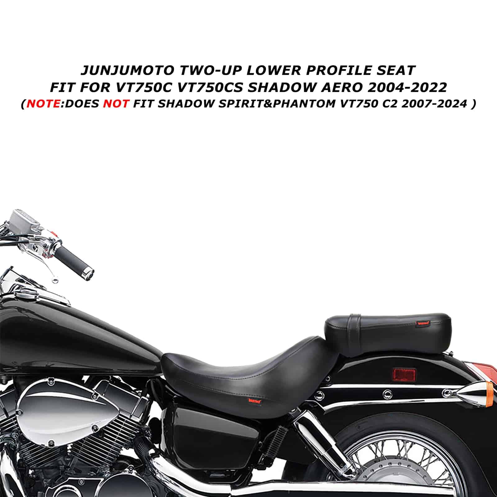 Asiento de motocicleta de perfil bajo diseñado para dos pasajeros, compatible con el modelo Shadow Aero VT750C fabricado entre los años 2004 y 2022. Este asiento en color negro liso ofrece una combinación perfecta de comodidad, soporte y durabilidad. Los cojines del asiento proporcionan una experiencia de conducción más placentera al reducir el impacto de los baches y vibraciones en la carretera. Fabricado con materiales de alta calidad como cuero, espuma y plástico, este asiento garantiza un uso duradero. Su instalación es sencilla y su material facilita la limpieza para mantener su aspecto impecable. El paquete incluye 1 pieza de asiento delantero y 1 pieza de asiento trasero para una experiencia de viaje cómoda y segura.
