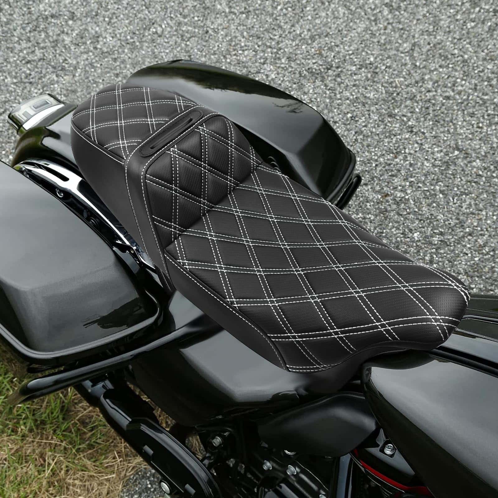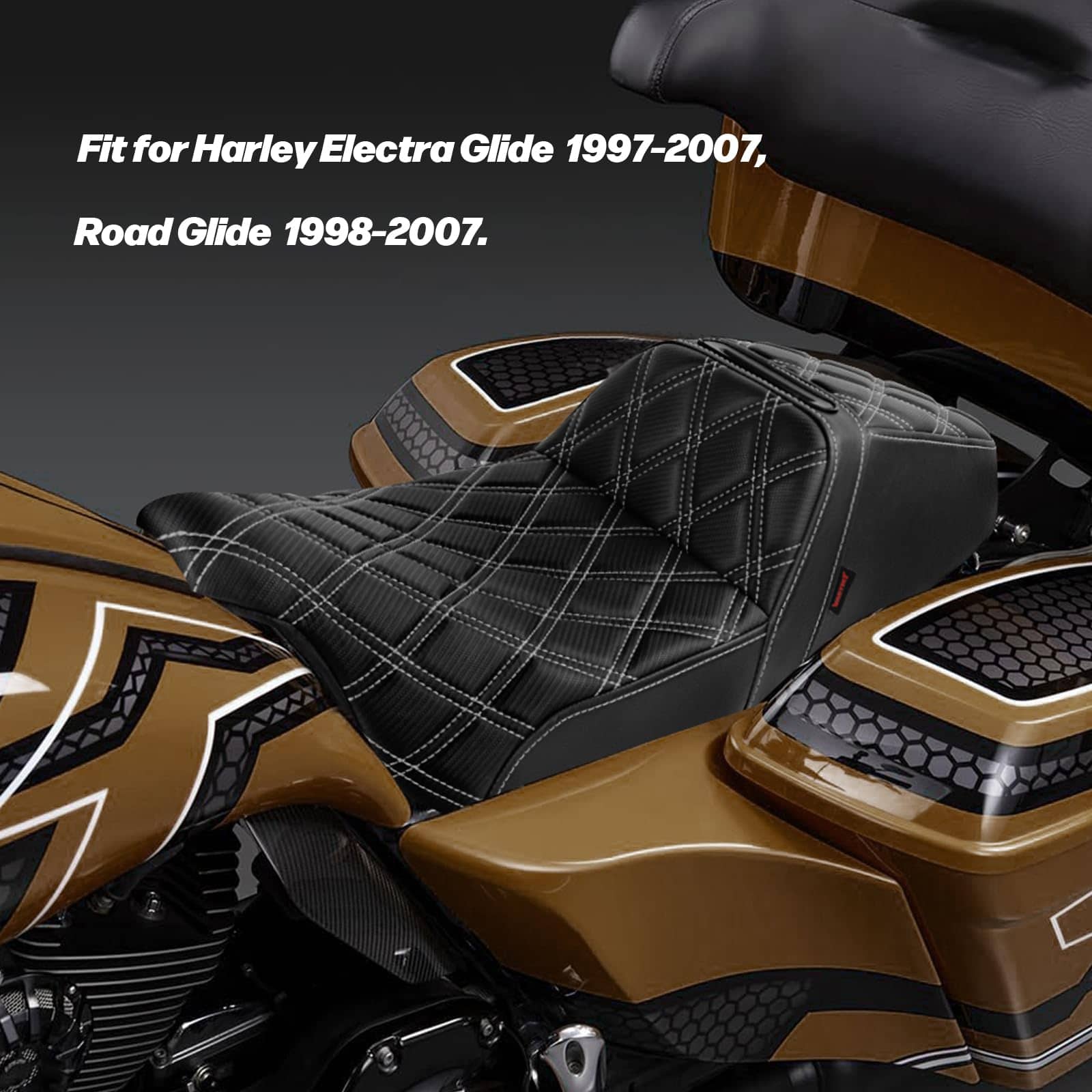 1. Ajuste perfecto para tu Harley, el asiento del conductor y del pasajero trasero es compatible con Harley Electra Glide 1997-2007 y Road Glide 1998-2007.