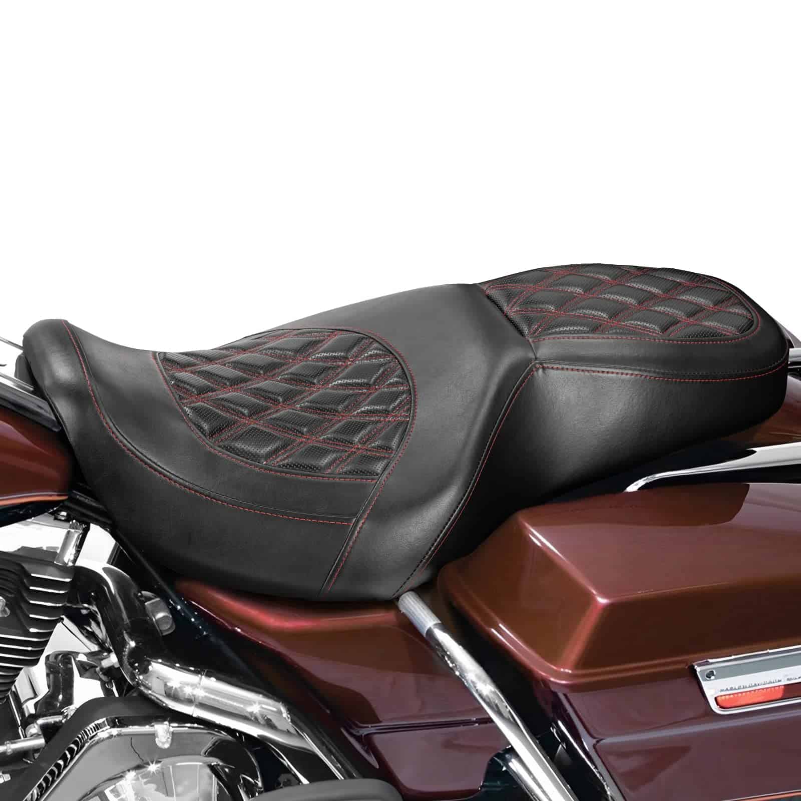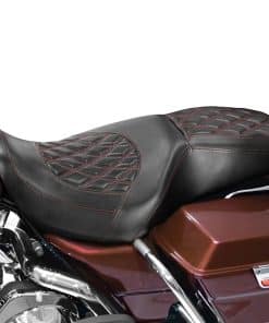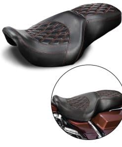 Especificaciones: Tipo de artículo: Asiento de conductor y pasajero. Color: Negro. Ancho del asiento delantero: 16 pulgadas. Ancho del asiento trasero: 10 pulgadas. Diseño: Liso. Solo o Doble: 2 plazas. Ajuste para Road King / Street Glide. Asiento duradero, de alta calidad y suave. Asiento clásico de cuero para que su amada motocicleta se luzca. Proporciona un paseo cómodo, más felicidad diaria y libera sus nervios. Instalación directa, no se requiere modificación. Características: Debajo de la espuma de doble densidad tradicional, el peso del conductor es soportado por un sistema de suspensión de tela revolucionario. El sistema de suspensión tipo hamaca actúa como un columpio, proporcionando suspensión sobre el panel del asiento. La suspensión interna evita el ‘fondo’ y brinda una mejora del 30% en comodidad y resistencia a largo plazo al proteger al conductor de las duras condiciones del camino. Con forma de cuna, la superficie del asiento profundo sostiene al operador en posición y proporciona mucho apoyo lumbar para la parte baja de la espalda. El amplio espacio de pasajero largo y ancho cuenta con un sistema de suspensión de tablero de resorte para una mejora del 15% en comodidad. Áreas de asientos de conductor y pasajero de doble zona más gruesas. Con fondo de Nylon de buena resistencia, su resistencia a la tracción es mayor que la del metal y la resistencia al aceite, no es fácil envejecer. Con mano de obra fina, su piel se ve muy suave, y la costura es muy ajustada, no es fácil que se caiga. Puede equiparse con respaldo de piloto. Ajuste: Apto para Harley Touring Road King FLHR 1997-2007. Apto para Harley Touring Street Glide FLHX 2006-2007. Contenido del paquete: 1x Asiento para conductor y pasajero de dos plazas para Harley.