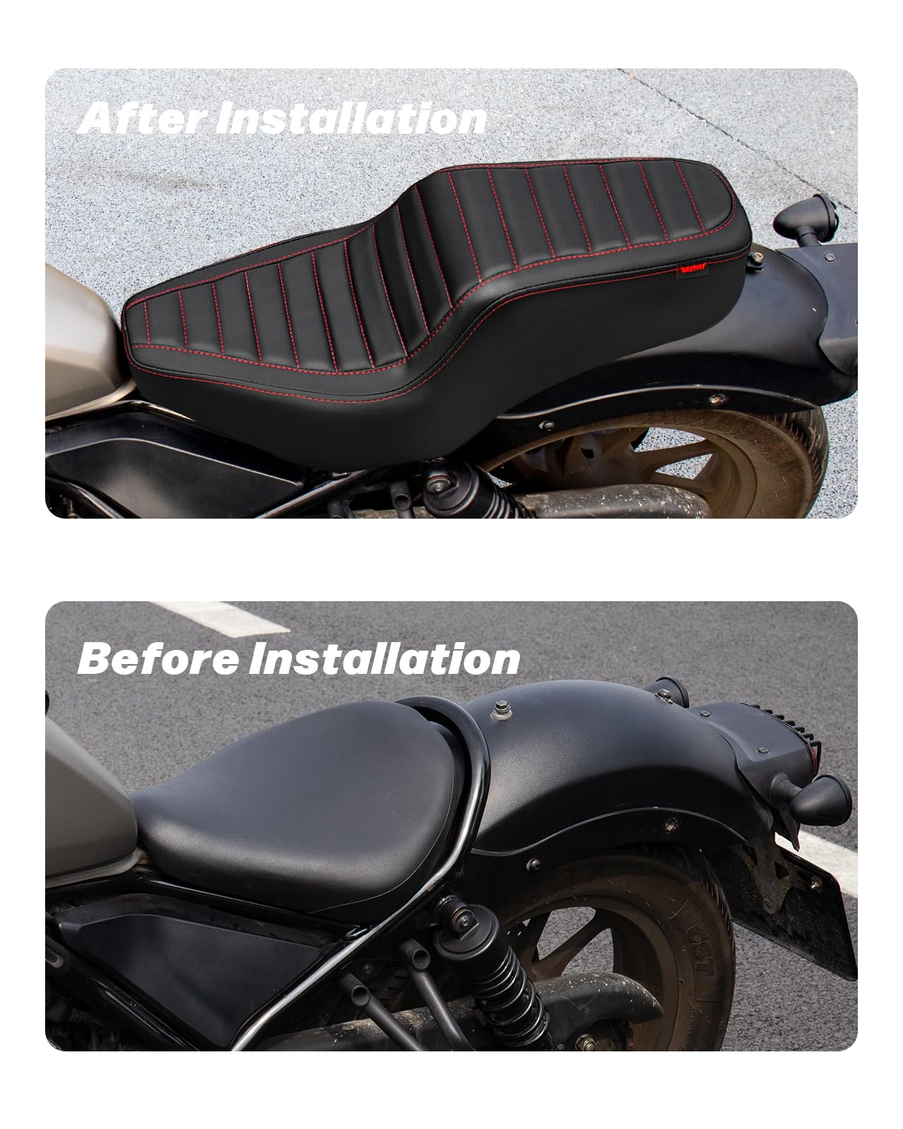 Este asiento de piloto y pasajero de una sola pieza Ergo-Drop para motocicletas ofrece la combinación perfecta de comodidad y durabilidad. Confeccionado con cuero premium y espuma suave, este asiento brinda un soporte adecuado para largos viajes en motocicleta. La amplia área proporcionada por este asiento permite que tanto el piloto como el pasajero disfruten de una mayor comodidad en trayectos largos. La instalación es rápida y sencilla, en menos de 3 minutos tendrás listo tu nuevo asiento. Disponible en varios colores y patrones para adaptarse al estilo de tu motocicleta. Disfruta de la libertad de viajar con el máximo confort gracias a este asiento de piloto y pasajero de una sola pieza.