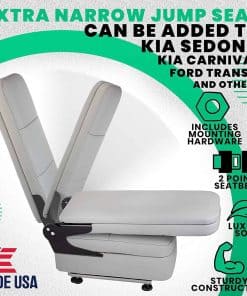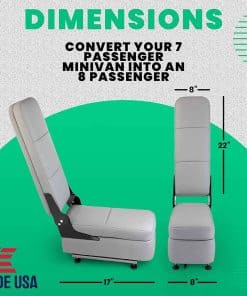 El asiento adicional plegable Ride USA es una fabulosa solución para agregar un asiento a su vehículo, ya sea una Van, Minivan, SUV o camioneta Pickup. Cientos de estos han sido instalados por nuestro equipo y muchos más por profesionales en Estados Unidos e internacionalmente. Cuenta con una construcción resistente y piezas de calidad. El acabado similar al cuero es hermoso y tiene una sensación premium de comodidad y suavidad. El acolchado es el equilibrio perfecto entre firme y mullido. Para añadir clase, incorporamos portavasos cromados para su disfrute cuando el asiento está plegado.