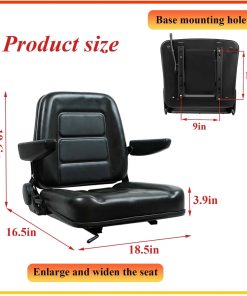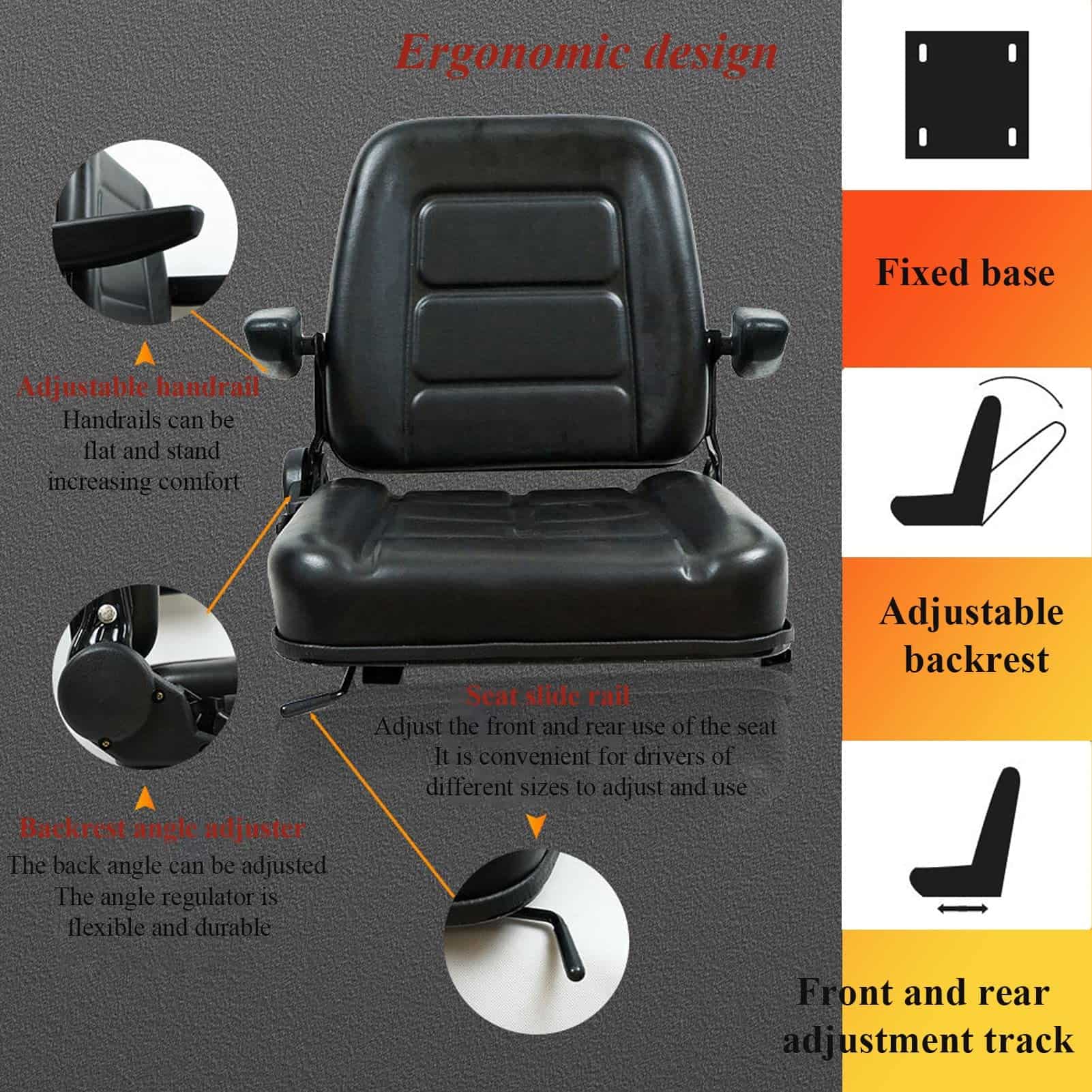 Nombre del producto: Asiento de Tractor, Asiento Universal para Montacargas Ajustable Asiento de Tractor Negro de PVC con Cinturón de Seguridad para Cortacésped.