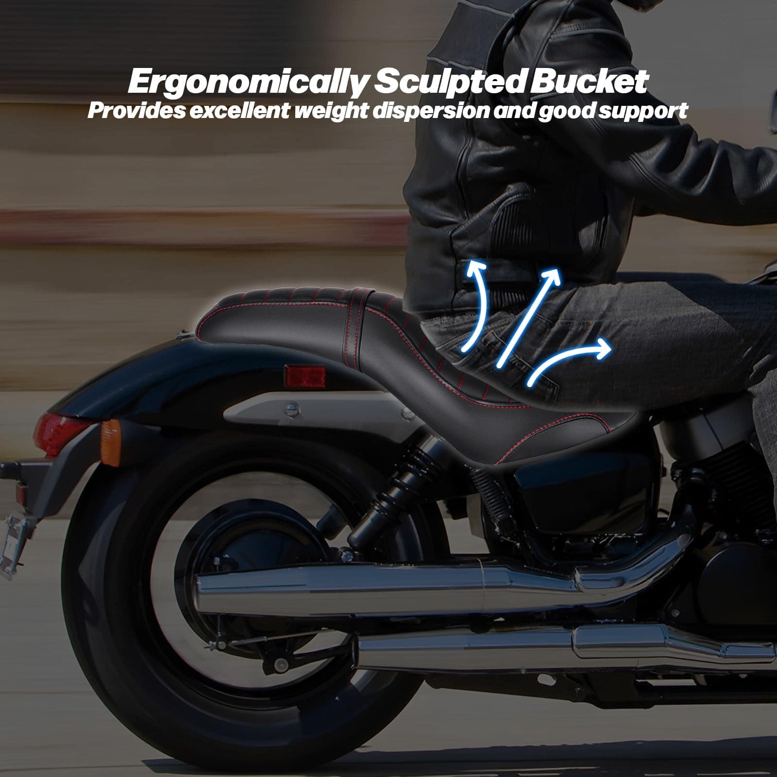 3. Experiencia de conducción cómoda – El asiento del conductor y pasajero Compatible para Shadow Spirit & Phantom utiliza una espuma con buena elasticidad y absorción de impactos, reduce el estrés en el coxis por las irregularidades del camino, mejora la comodidad y la suavidad durante el viaje.