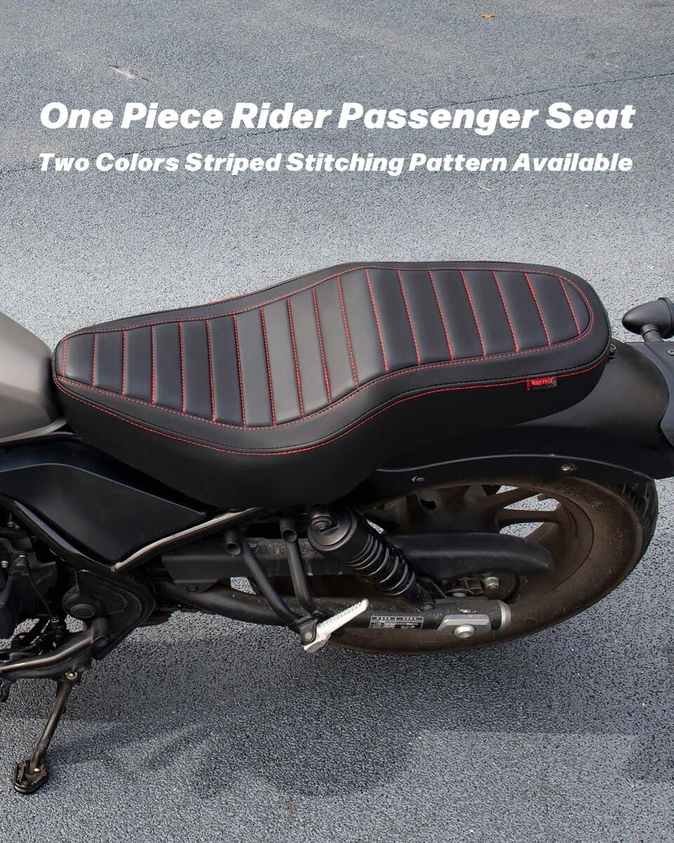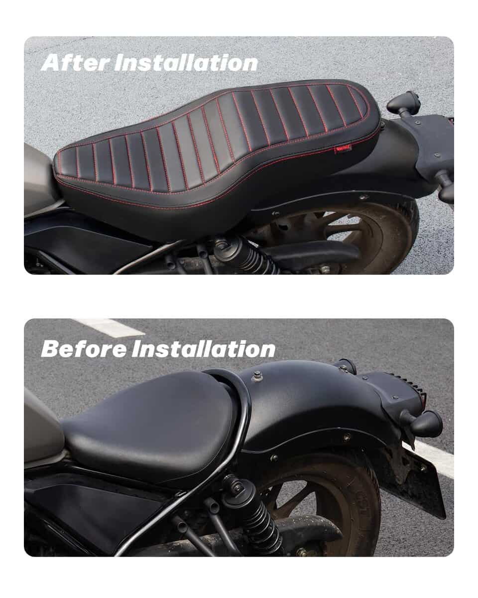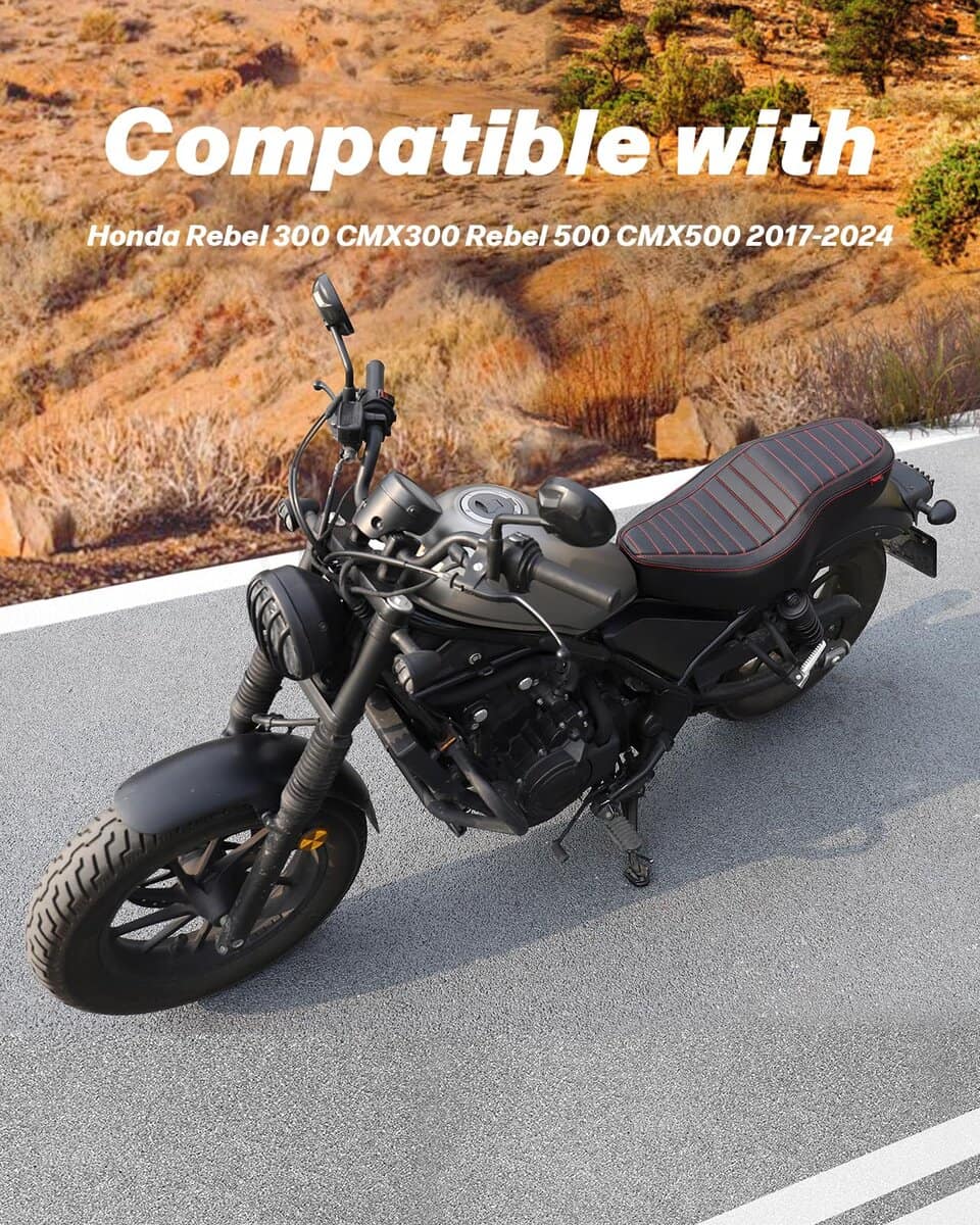 1. Compatibilidad: Este cojín de asiento de una sola pieza para conductor y pasajero es compatible con Rebel 300 Rebel 500 CMX300 CMX500 2017-2024.