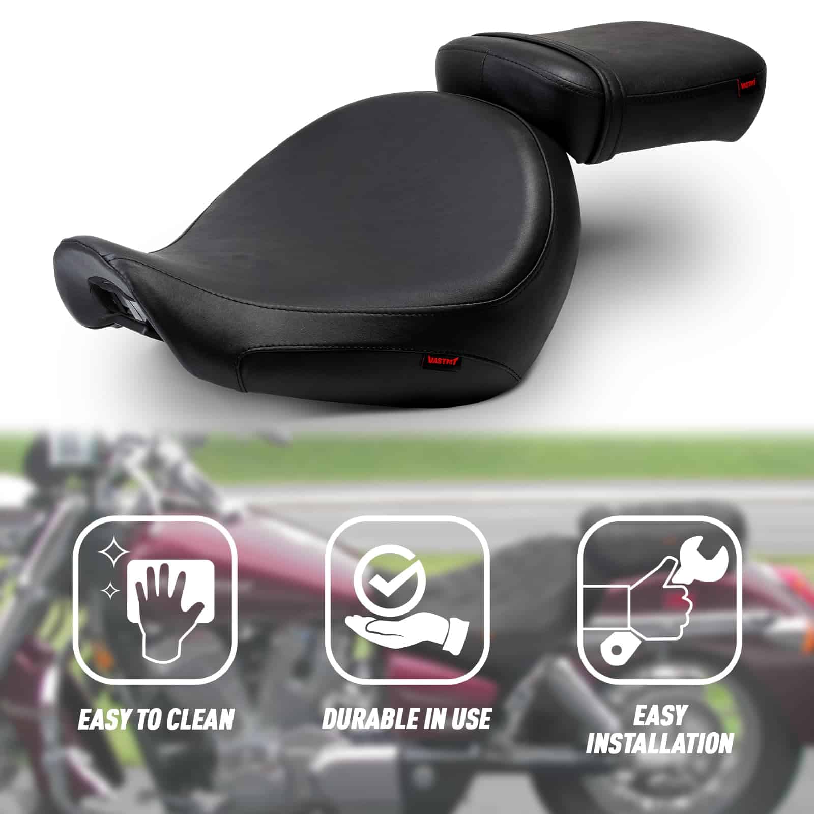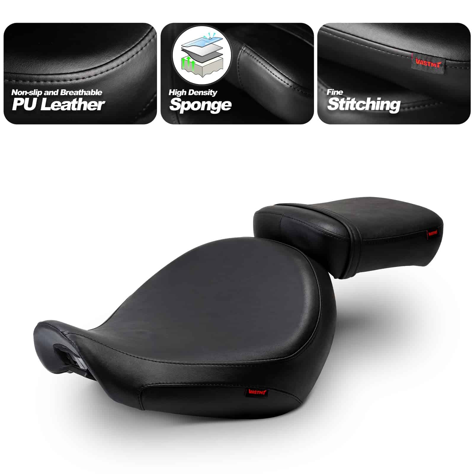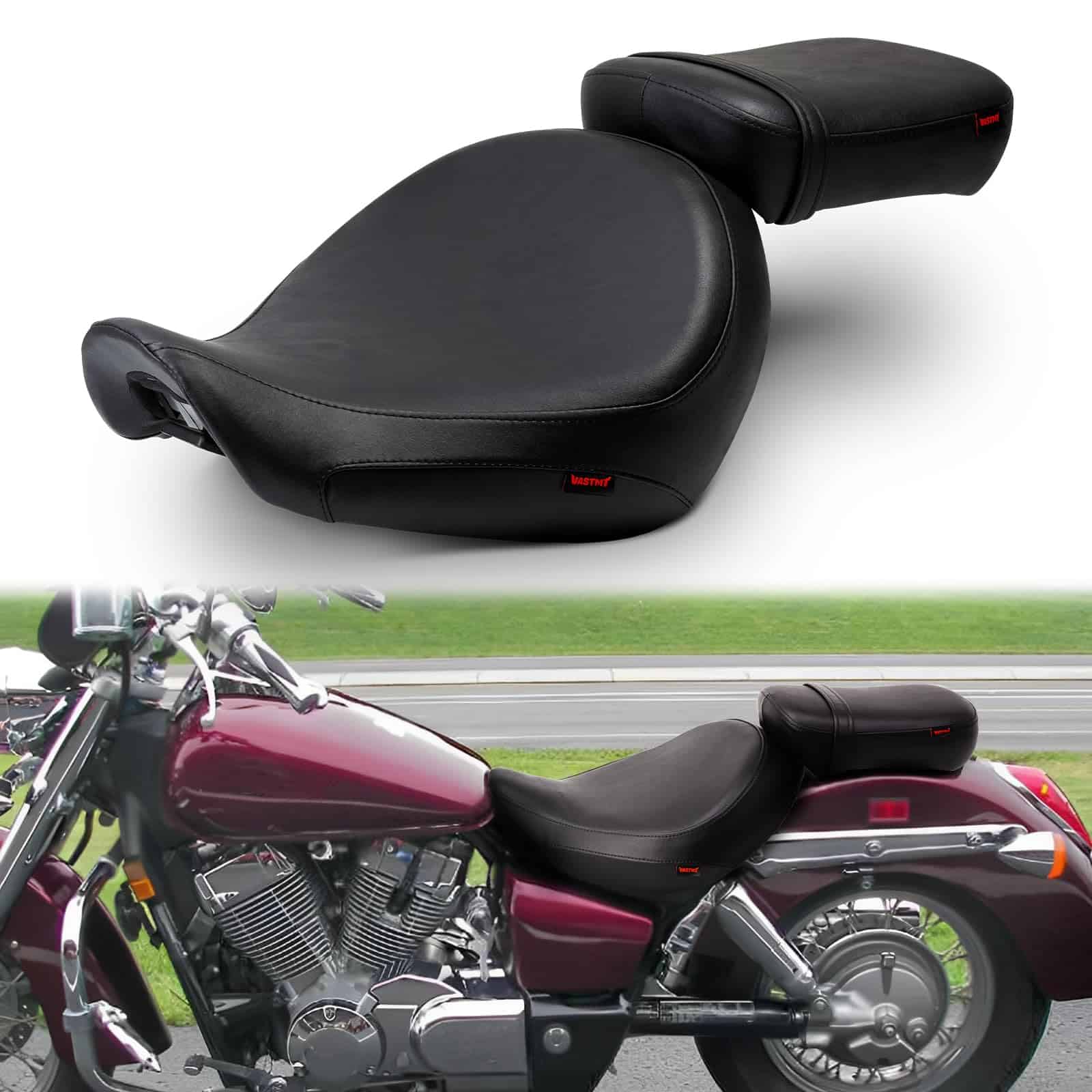 VASTMT presenta el Asiento del Conductor y Pasajero para Motocicleta Negro sin Patrón compatible con Shadow Aero VT750C 2004-2023. Este asiento cuenta con una base de material Nylon de buena resistencia, que proporciona una mayor resistencia a la tracción que el metal y una mayor resistencia al aceite, evitando el envejecimiento prematuro. Además, su excelente mano de obra le otorga una superficie muy suave y una costura muy ajustada, evitando desprendimientos. Para una experiencia cómoda, este asiento ofrece un generoso espacio para el pasajero largo y ancho, con un sistema de suspensión de muelles que mejora un 15% la comodidad durante la conducción. Además, la suspensión interna evita el fondo y proporciona una mejora del 30% en la comodidad y resistencia durante recorridos largos, protegiendo al conductor de las duras condiciones del camino. Su diseño en forma de cuna y la superficie de asiento profunda y con forma de cubo mantienen al operador en posición y proporcionan soporte lumbar para la parte baja de la espalda. Este asiento está diseñado profesionalmente para satisfacer sus necesidades durante la conducción de su motocicleta Shadow Aero VT750C. Disfrute de un viaje cómodo y seguro con el Asiento del Conductor y Pasajero para Motocicleta de VASTMT.