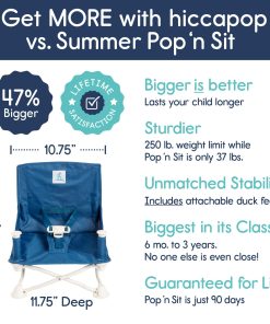 Planning a day at the beach, a weekend camping, a visit to Grandma�s house, going out to dinner or spending a quiet evening at home OmniBoost will conveniently, comfortably and safely provide the perfect space for baby to sit, eat, and play. Lightweight FRUSTRATION-FREE folding frame expands and compactly folds down for travel. The rear pocket for bibs & spoons, plus a shoulder carry bag for sanitary storage make the OmniBoost the ideal travel booster chair. Keep your child fully secured with hiccapop�s gentle restraint system, ergonomically designed to keep even the most wiggly toddler in place and cozy. Plus, the buckles are easily released using only one hand!. We all know that babies are messy eaters! Our portable booster seat is designed to effortlessly wipe clean, allowing more quality time with your precious tot. To assist with the inevitable mess, the fabric cover slides off the frame for machine washing – a must have for sanitizing and spaghetti stain removal. Like a personal dining room on the go, this portable baby chair booster seat comes equipped with a convenient attachable/detachable, dishwasher safe and BPA-free tray that swivels for hassle-free in and out. When your little one grows, remove the tray and boost him up to the kitchen table to eat with the grownups!. We designed the OmniBoost to have a wide, stable base, but we didn�t stop there. We added removable, tip-over prevention duck feet to distribute weight evenly and increase stability on soft or uneven surfaces such as sand and grass.