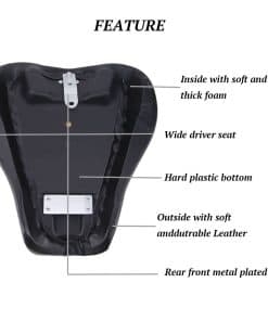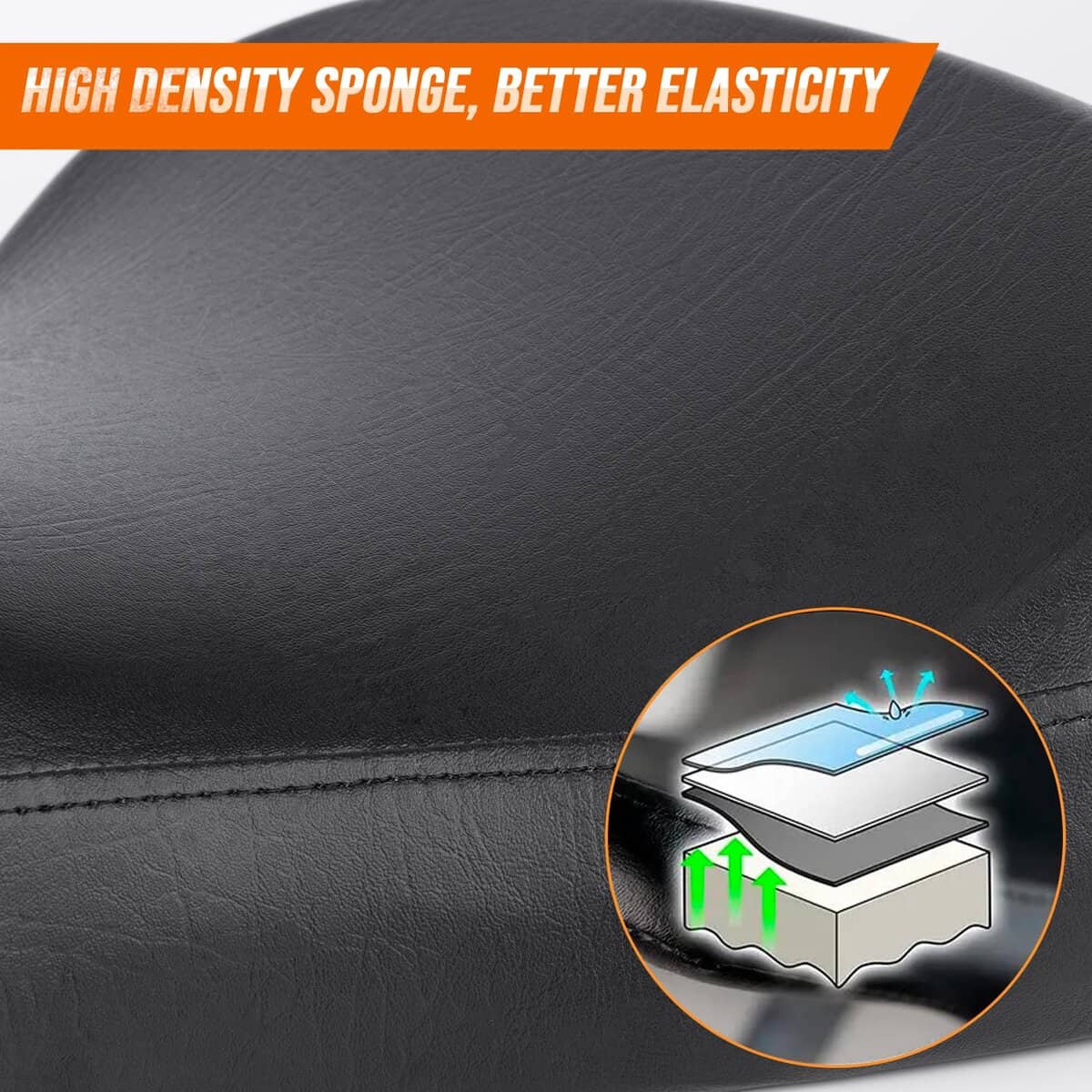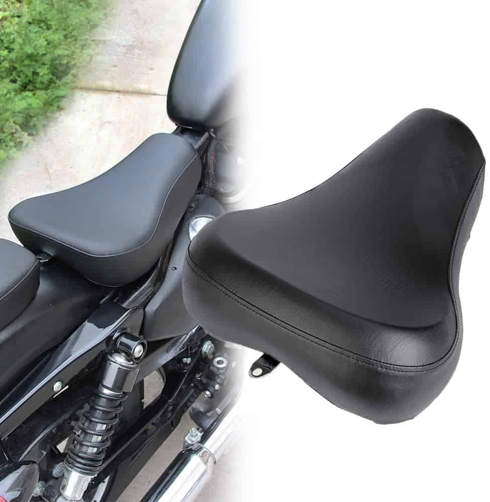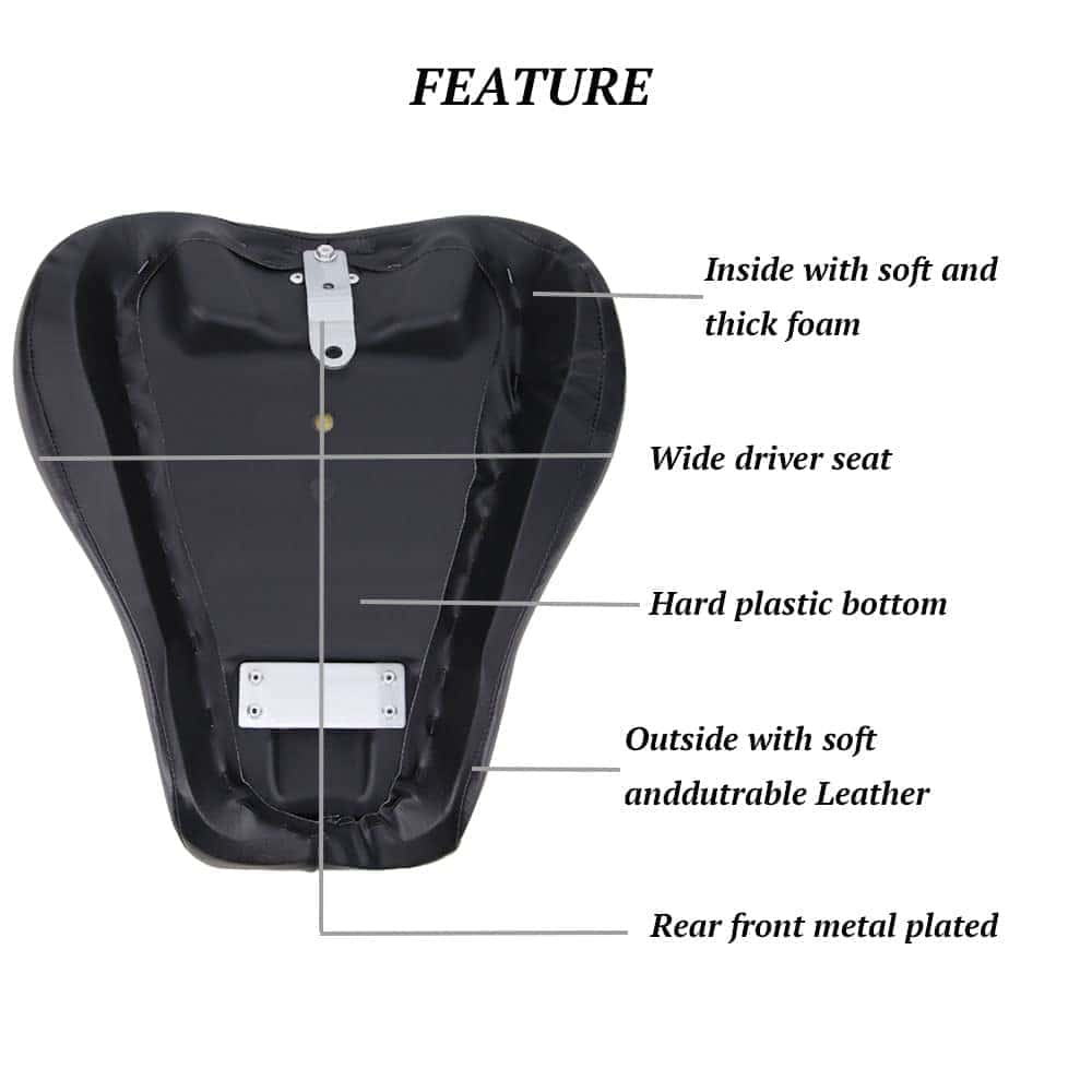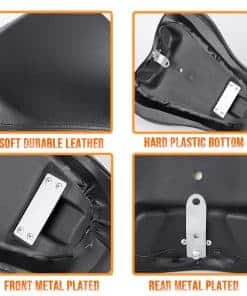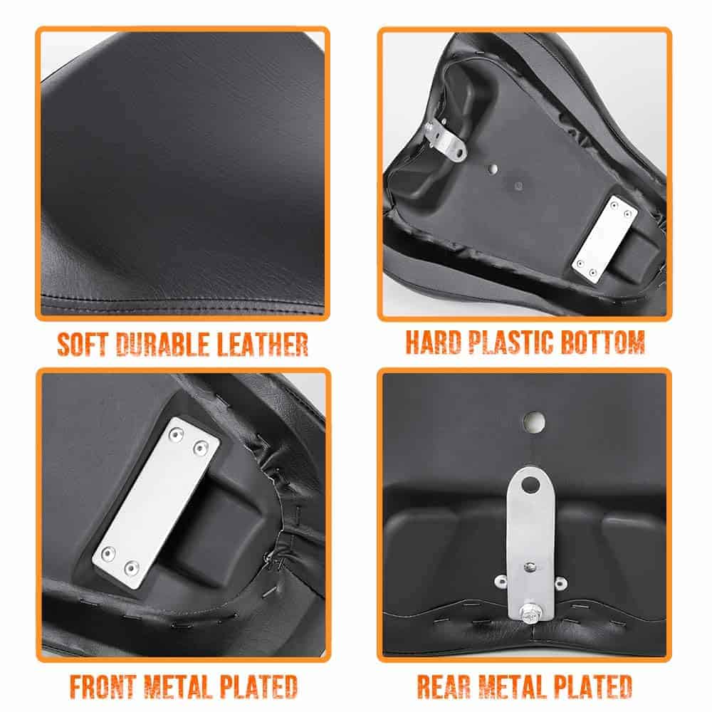 3. Asiento bobber universal grande – El asiento es lo suficientemente grande para un amigo de 250 lb, Cuero sintético suave y espuma de alta densidad ofrece un viaje confortable, Compatible con el asiento individual Harley Sportster.