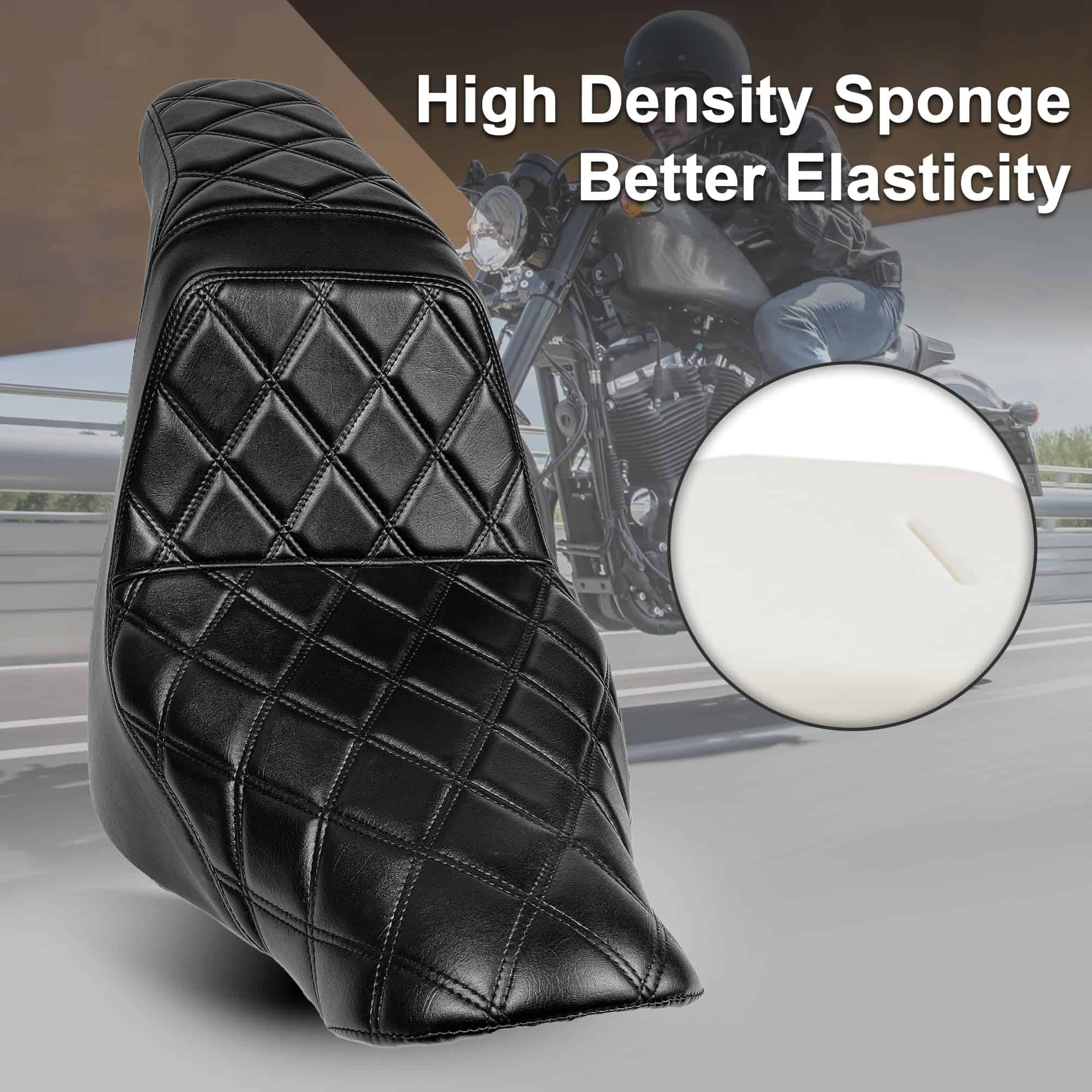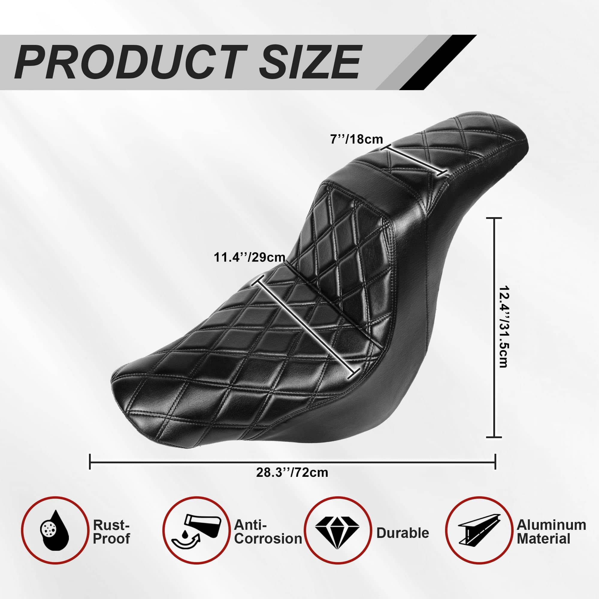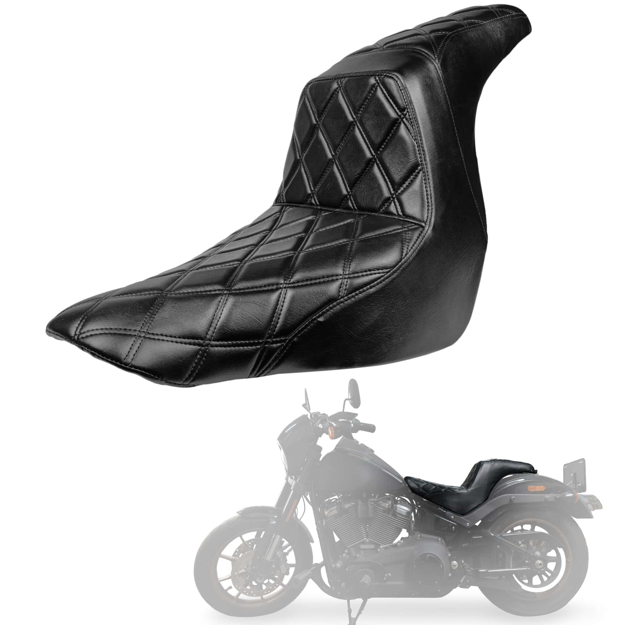 Asiento para Conductor y Pasajero Apto para Harley Softail Sport Glide FLSB Low Rider FXLR FXLRS FXLRST 2018 en Adelante (Costuras Negras) – Este asiento para conductor y pasajero es específicamente diseñado para adaptarse a los modelos Harley FXLR Low Rider 2018-2021, FXLRS Low Rider S 2020-2024 y FXLRST Low Rider ST 2022-2024. El asiento para conductor ofrece un mejor soporte lumbar para el piloto, mientras que el asiento para pasajero cuenta con un acolchado adicional para un paseo suave y cómodo, incluso en terrenos difíciles. Fabricado con cuero sintético de alta calidad y espuma de alta densidad, este asiento garantiza una comodidad duradera y excelente soporte tanto para el conductor como para el pasajero, resistiendo la deformación con el tiempo. Fácil de instalar, este asiento para conductor de Harley es un reemplazo directo para su asiento viejo o dañado, con dimensiones que aseguran un ajuste perfecto y una instalación sin problemas. Disfrute de una mayor comodidad, durabilidad y estilo con este conjunto de asientos premium que incluye 1X asiento para conductor y pasajero.