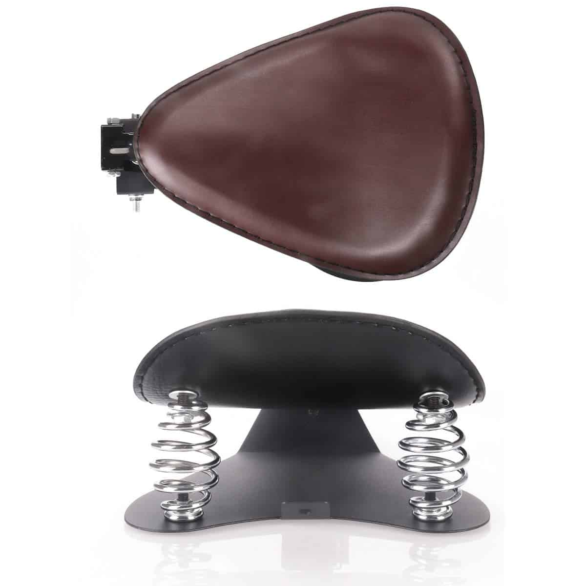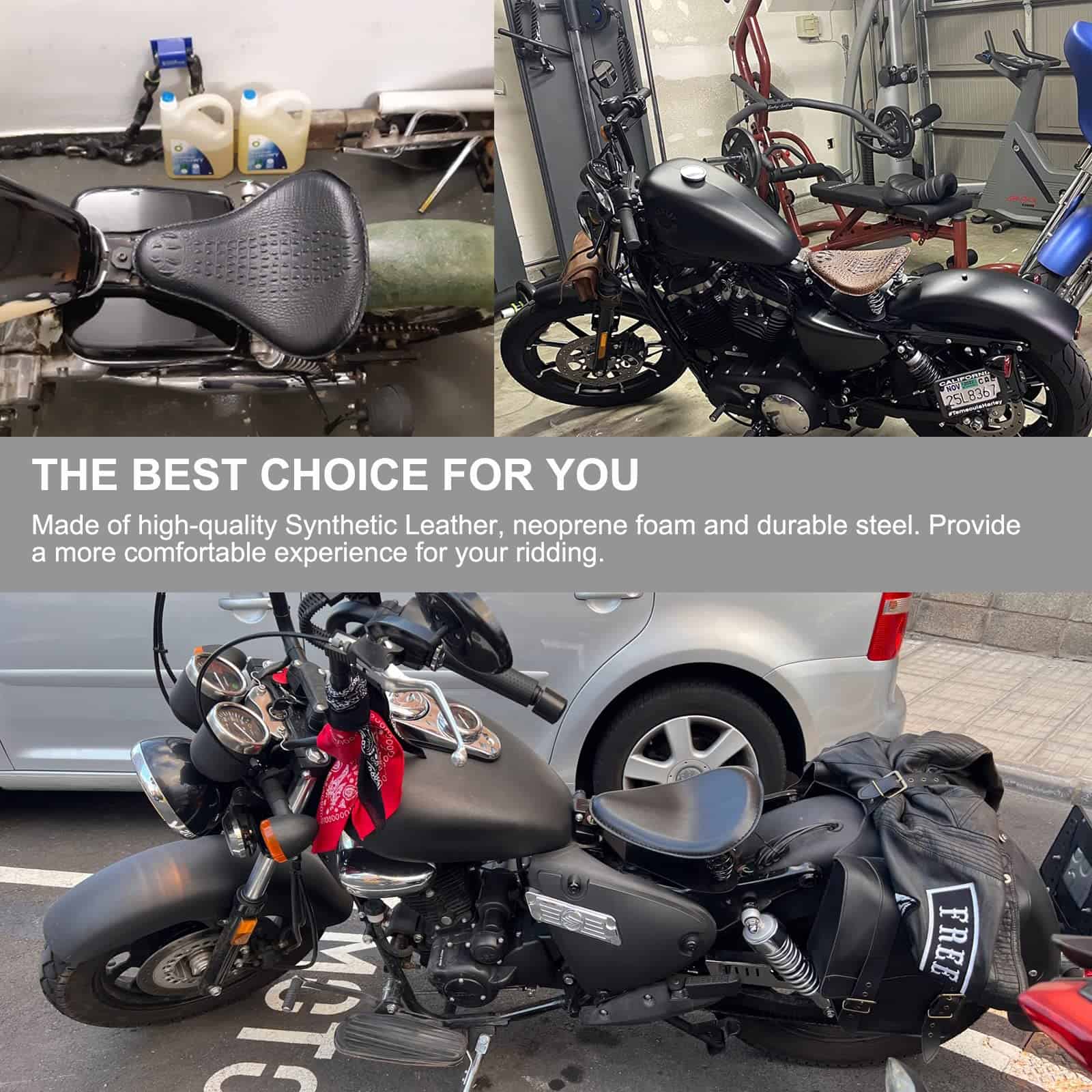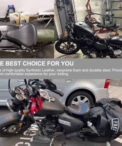 Asiento de moto de accesorio 100% nuevo, hecho a medida para Harley Sportster XL883/1200 y otras marcas como Sportster Bobber, Chopper y aplicaciones personalizadas. Incluye kit de hardware de montaje con resortes y soporte para una absorción de impactos excelente. Garantía de satisfacción, estamos aquí para ayudarte con cualquier duda sobre nuestro producto y servicio.