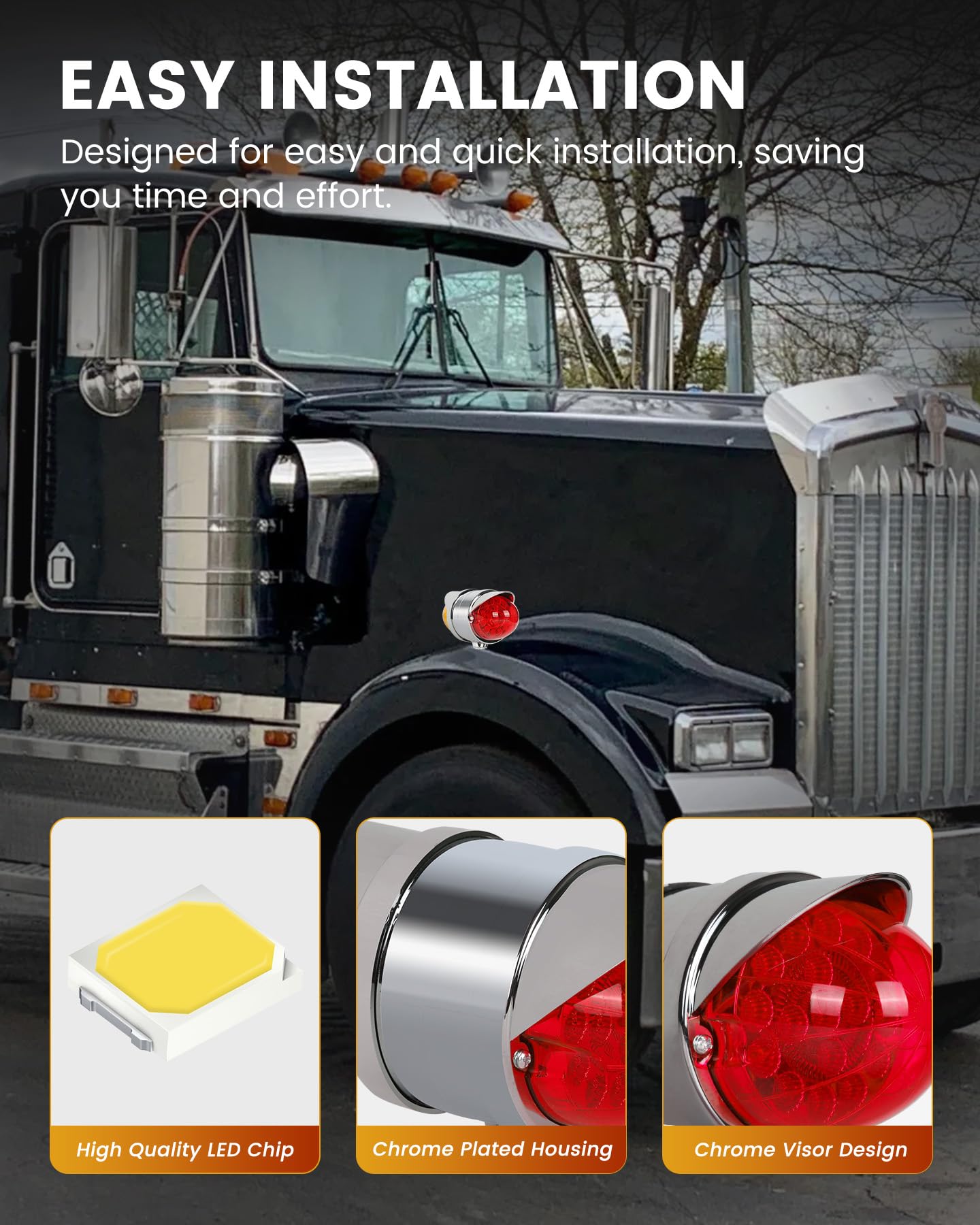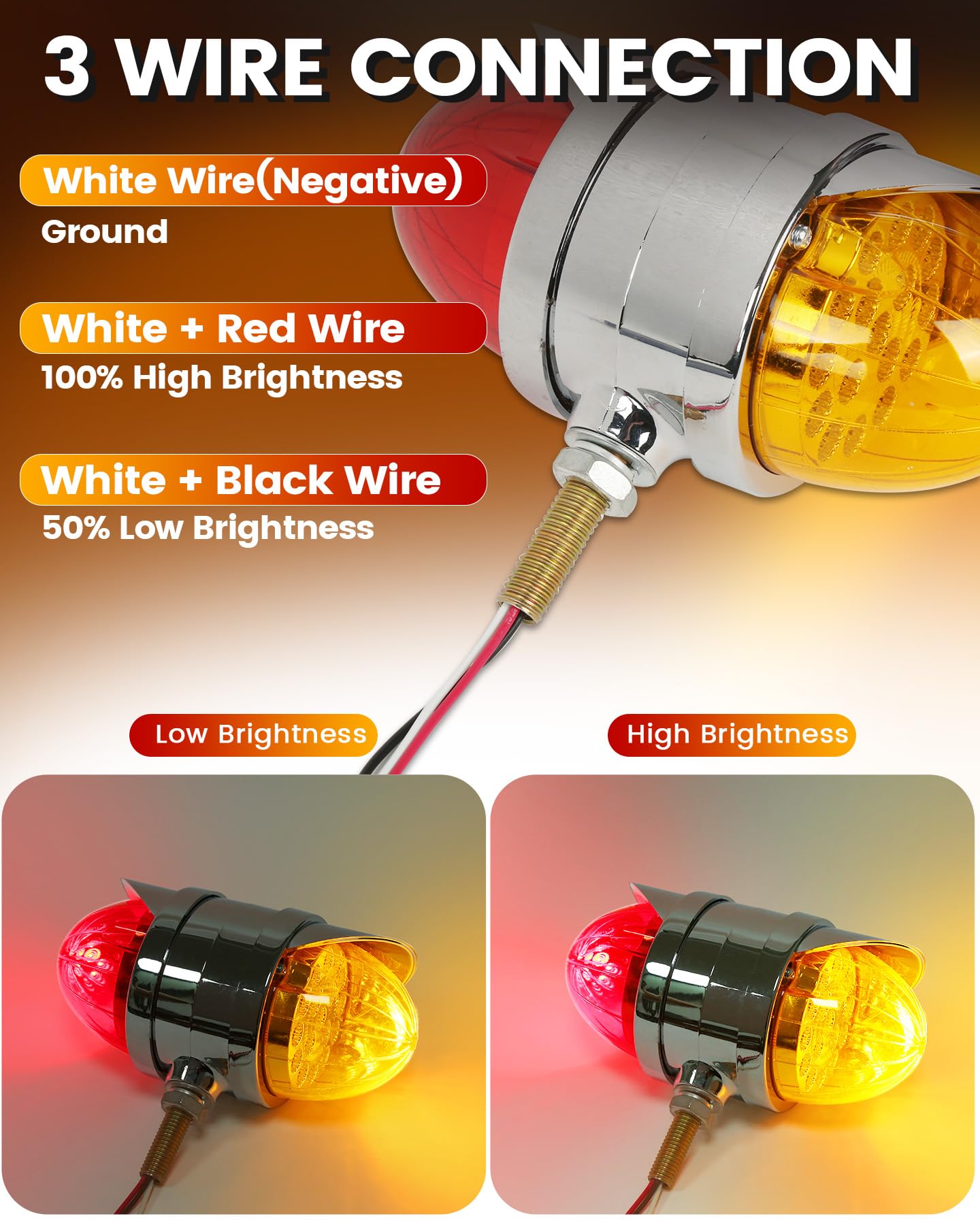 4. FÁCIL DE INSTALAR: Esta luz de guardabarros de doble cara adopta un diseño de conexión de tres cables, Dimensión: 3.5″x5.5″x7″. El cable blanco es negativo, blanco + negro es brillo bajo, y blanco + rojo es brillo alto. Adecuado para camiones Freightliner, Kenworth, Peterbilt, Mack, International, Paccar, así como otros remolques, vehículos recreativos, camiones semi, camiones de volteo, tractores y más.