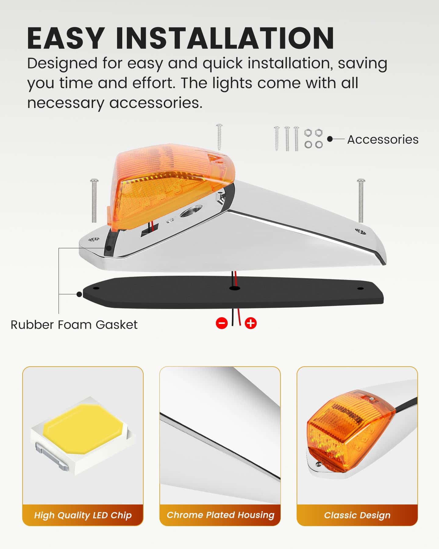 4. INSTALACIÓN FÁCIL: La luz de techo mide 2.6 pulgadas de alto, 3.73 pulgadas de ancho, 10.63 pulgadas de largo y tiene una distancia entre agujeros de montaje de 9.25 pulgadas. Incluye una junta de espuma de goma y tornillos de montaje para una instalación sencilla. El cable rojo se conecta al positivo y el cable negro se conecta al negativo. Adecuado para camiones Freightliner, Kenworth, Peterbilt, Mack, International, Paccar, así como otros remolques, RVs, camiones semirremolques, camiones de volteo, tractores y más.