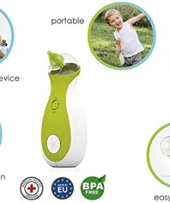 Aspirador nasal eléctrico para bebés Nosiboo Go/Nose Sucker – Limpiador de nariz portátil, operado con batería – Succión nasal con tecnología de alimentación UPT. Nosiboo Go ha sido creado en el espíritu de la practicidad brindando alivio instantáneo para niños en movimiento. El paquete de baterías de polímero de litio permite que Nosiboo Go se recargue sin tener que comprar baterías adicionales. Nosiboo Go funciona gracias a nuestra nueva Tecnología de Alimentación Última. Esta tecnología efectiva y única basada en flujo de aire crea una succión constantemente alta pero suave. Nuestros ingenieros crearon la cabeza de pingüino para hacer la vida de los padres y sus pequeños más fácil. La cabeza es la única parte del dispositivo que necesita limpieza después de su uso. Se puede desmontar en segundos y simplemente lavar bajo agua corriente. Mientras desarrollamos nuestra línea de productos, utilizamos exclusivamente materiales libres de BPA para que su hijo pueda usarlo desde el primer día de vida.