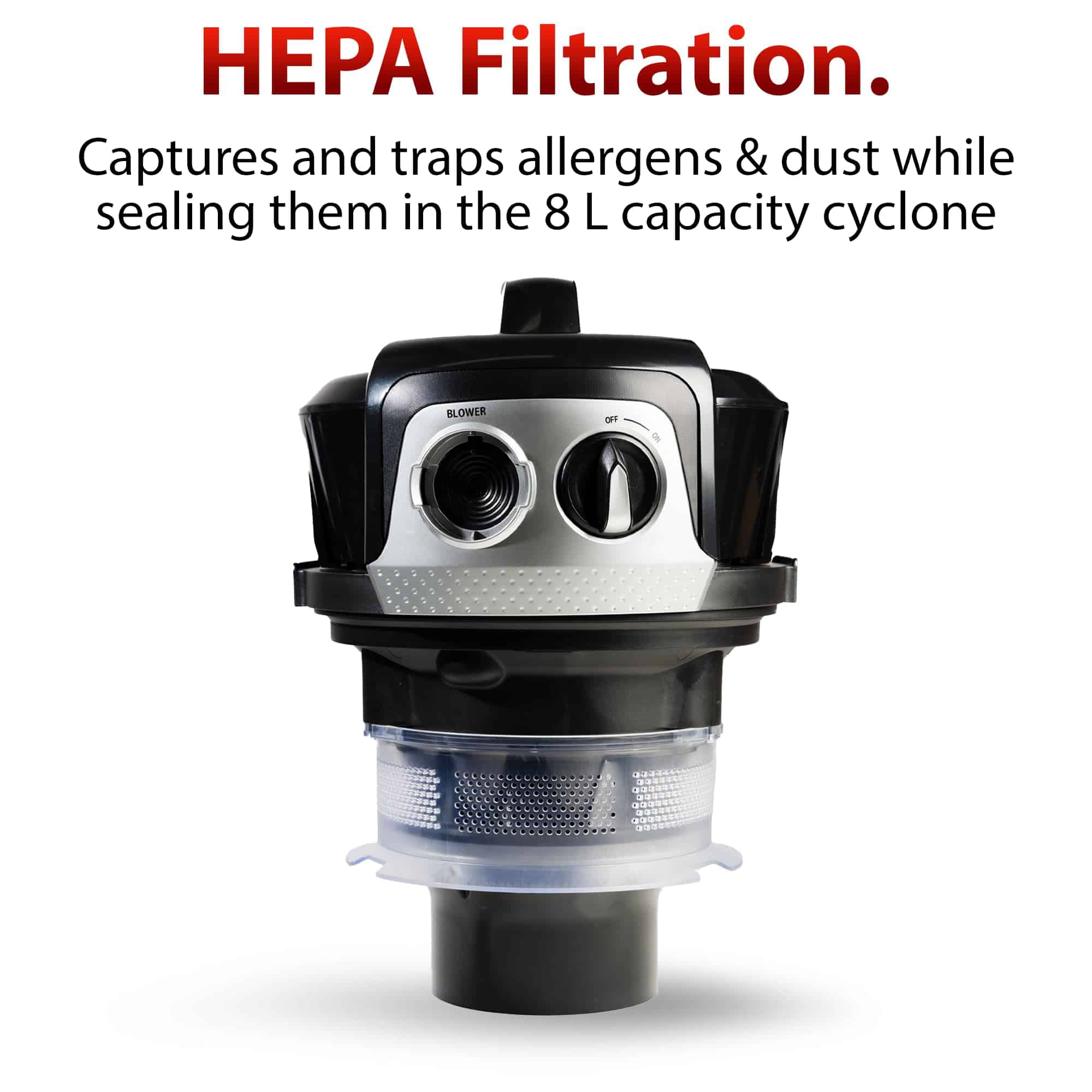 2. CAPACIDAD DE 8 LITROS: Limpiar su vehículo es más fácil con la capacidad de 8 litros de la Aspiradora Ciclónica. Esta generosa capacidad le permite concentrarse en la limpieza sin interrupciones por vaciado, lo que la hace perfecta para manejar tareas de limpieza más grandes sin problemas.