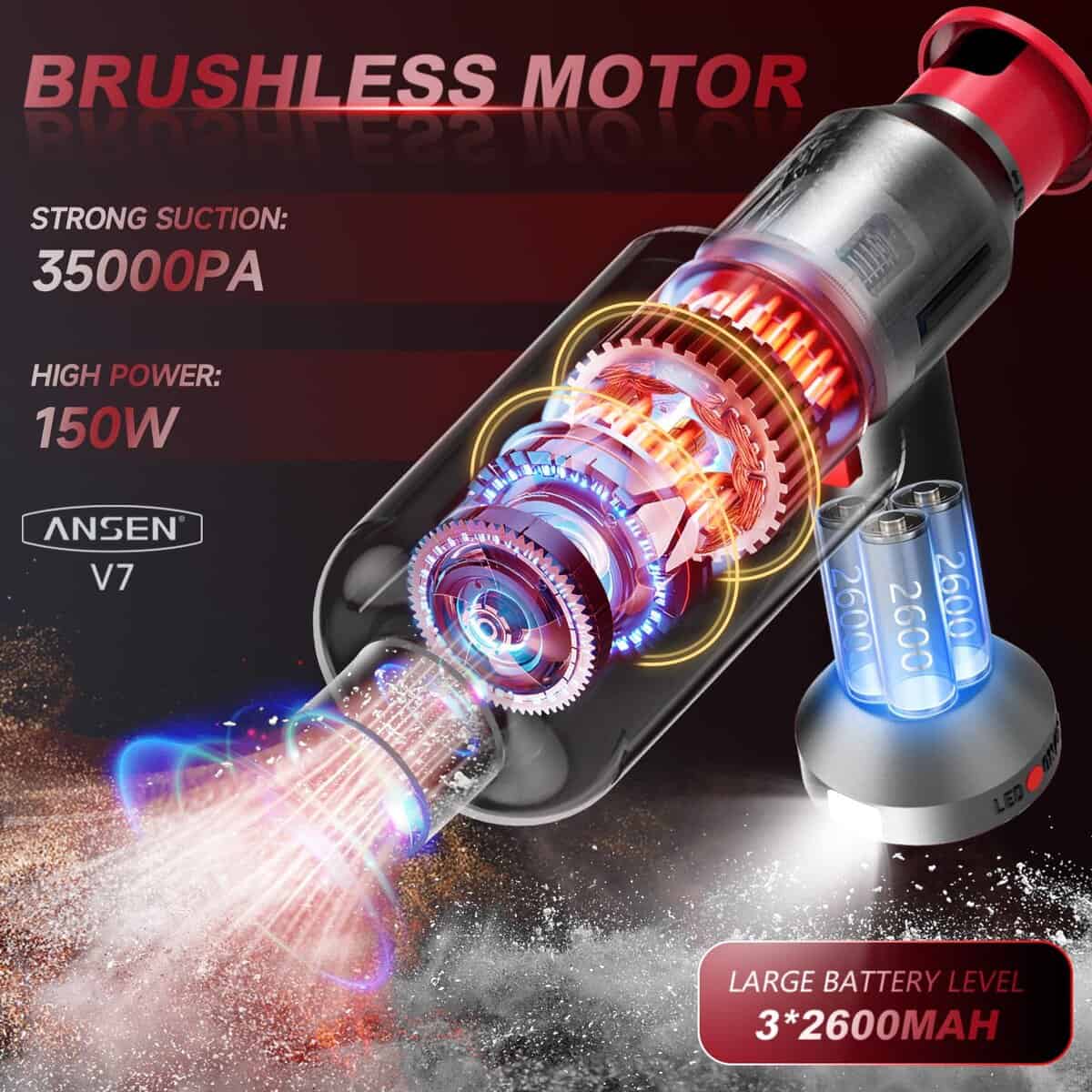 Aspiradora de Coche Ansen Portátil, Motor sin Escobillas de
