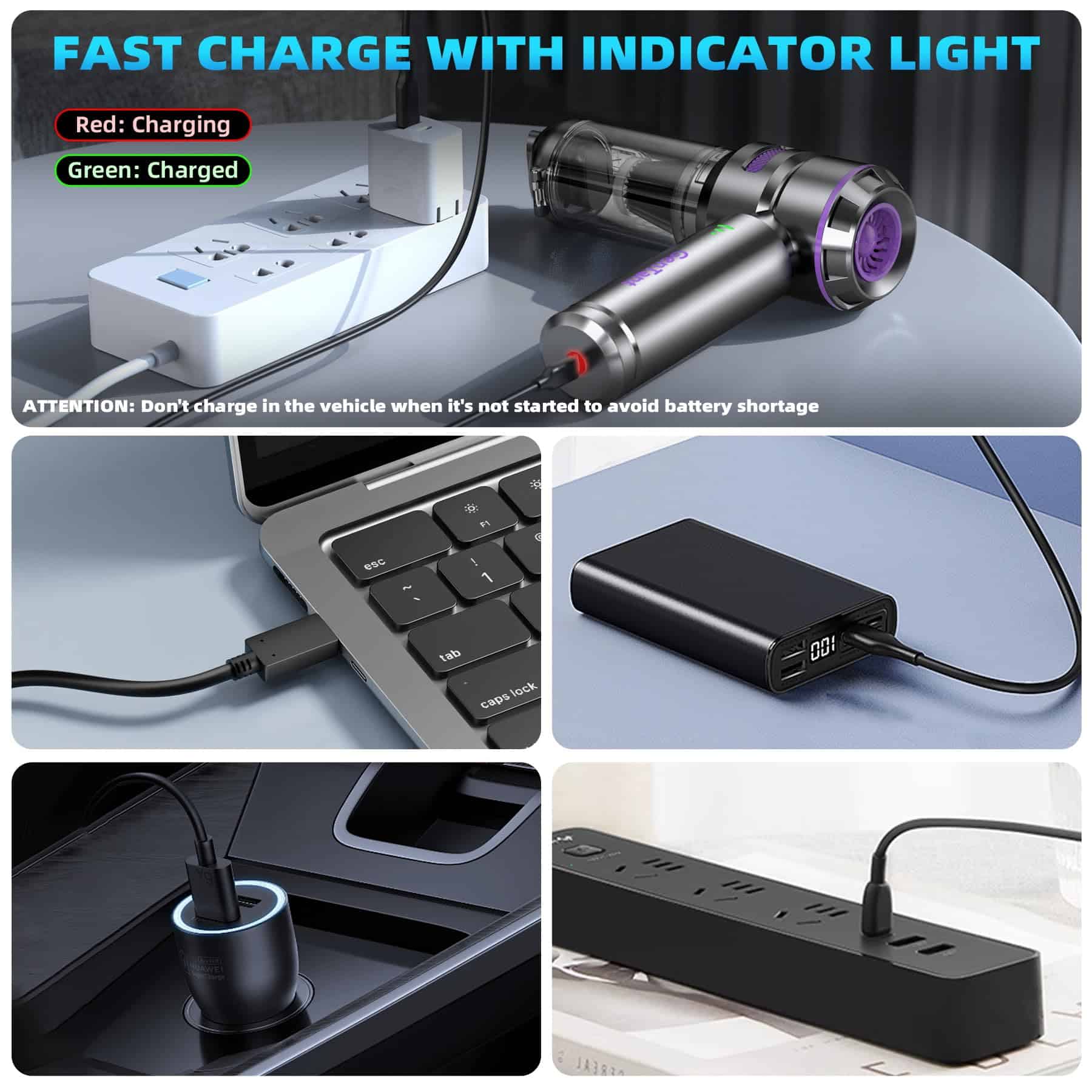Además, la aspiradora GenTant Mini cuenta con una carga rápida a través de USB Tipo C, proporcionando hasta 35 minutos de uso continuo. El filtro lavable y reutilizable asegura un rendimiento duradero y eficiente, junto con los filtros adicionales incluidos para una vida útil prolongada del producto.