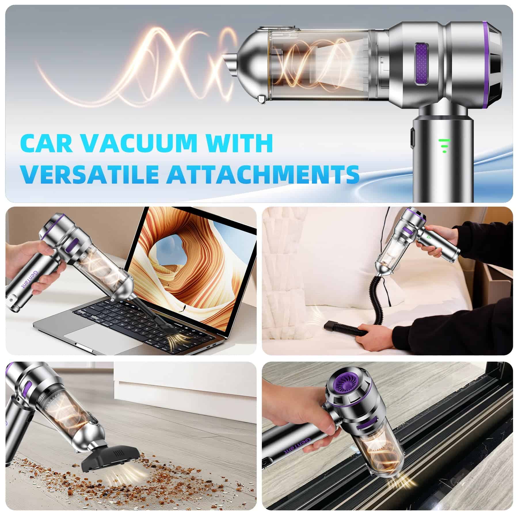 Estimado cliente, le presentamos la Aspiradora de Mano GenTant Mini Inalámbrica, su compañera ideal para mantener limpia su hogar, oficina o coche sin esfuerzo. Equipada con un motor sin escobillas de alto rendimiento, esta aspiradora ofrece una potente succión de hasta 18 kPa, lo que facilita la limpieza de la suciedad, los desechos y el pelo de mascotas en diferentes superficies. Además, su función de soplador de aire le permite eliminar con facilidad el polvo residual de teclados de computadoras, lentes de cámaras y otras áreas de difícil acceso. ¡Todo en un solo producto!