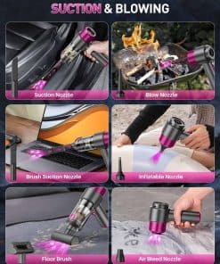Aspiradora de Mano para Autos EYYA Inalámbrica, Aspiradora de Coche de Alta Potencia de 15000PA y Soplador de Aire, Aspiradora de Coche Portátil 4-en-1 con Luz LED, Aspiradora de Mano para Coche Hogar Oficina – Potencia y Versatilidad La aspiradora de mano EYYA para autos te ofrece un rendimiento potente y versátil para limpiar tu automóvil, hogar u oficina de forma rápida y eficiente. Con un diseño 4-en-1 y 7 accesorios incluidos, esta aspiradora portátil te permite aspirar, soplar, inflar y comprimir al vacío para adaptarse a tus diferentes necesidades de limpieza. – Potente Succión de 15000PA Con un potente motor de 86,000RPM que proporciona hasta 15000PA de succión, la aspiradora de coche EYYA puede manejar fácilmente todos los tipos de desechos, desde polvo fino hasta escombros grandes. Ya sea que estés limpiando tu hogar, tu automóvil o tu oficina, esta potente aspiradora te garantiza resultados impecables en cada uso. – Sistema de Filtración Avanzado La aspiradora EYYA está equipada con un sistema de doble filtración mejorado que no solo evita la pérdida de succión y los atascos, sino que también protege el motor de daños causados por partículas pequeñas y polvo. Con un filtro de acero y un filtro HEPA lavable, puedes estar seguro de que el aire que expulsa la aspiradora está limpio y libre de alérgenos. – Carga Rápida y Segura Con una batería de 4000mAh integrada, la aspiradora EYYA se puede recargar rápidamente a través de un puerto USB estándar, garantizando un tiempo de funcionamiento de hasta 25 minutos con una sola carga. Además, el puerto de carga tipo C y el indicador LED de estado de carga hacen que sea fácil y conveniente recargar esta aspiradora en cualquier lugar y en cualquier momento. – Diseño Portátil y Práctico Con un peso de solo 0.88LB y un diseño compacto y ergonómico, la aspiradora de mano EYYA es fácil de transportar y almacenar, lo que la convierte en la herramienta perfecta para limpiar áreas altas o de difícil acceso. Su luz LED integrada te permite iluminar áreas oscuras y estrechas, mientras que su operación silenciosa te permite limpiar sin molestar a nadie a tu alrededor. ¡Hazte con la aspiradora de mano EYYA y disfruta de una limpieza eficiente y profesional en todo momento!