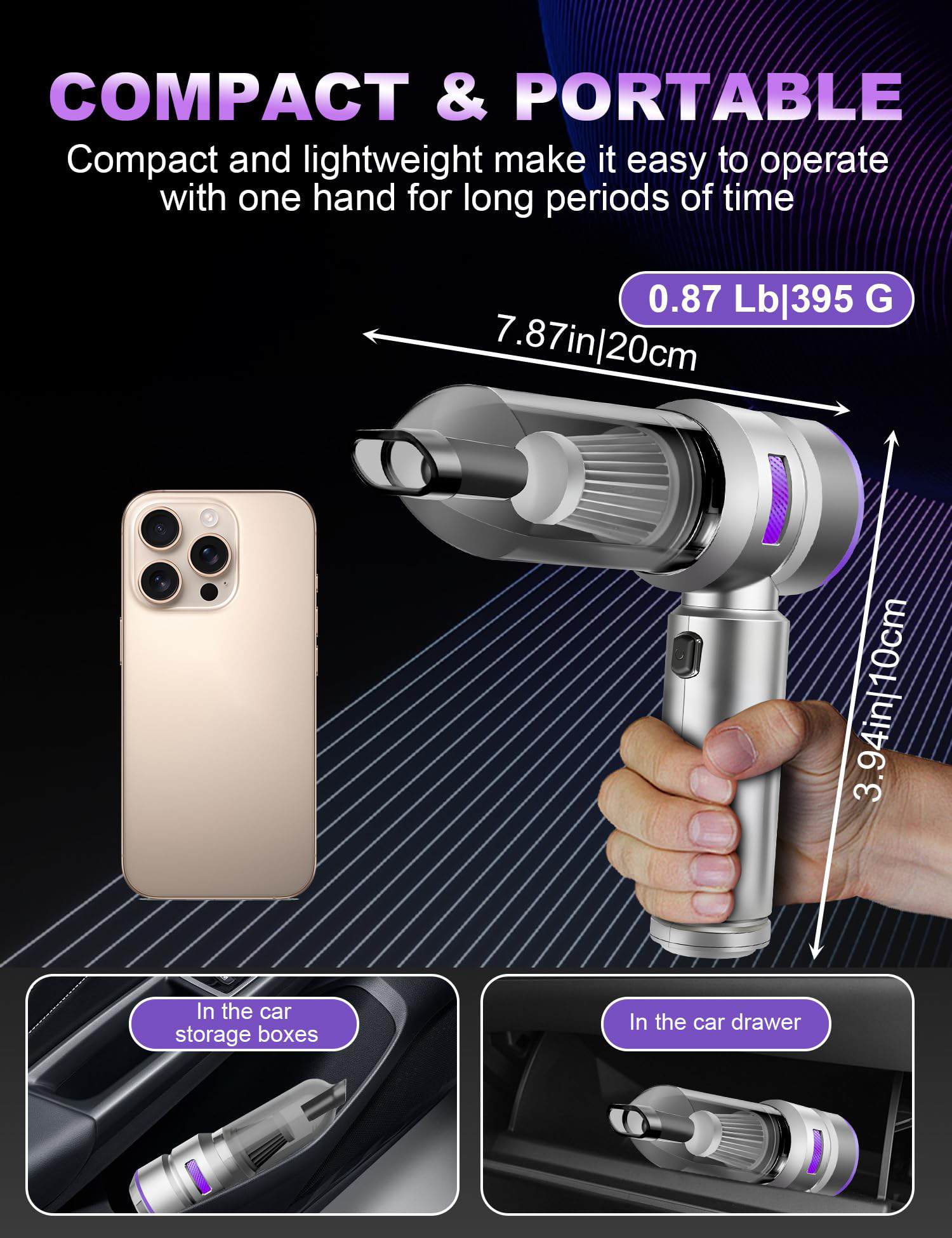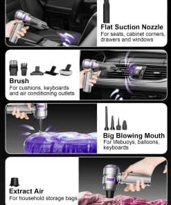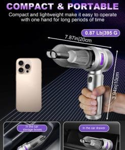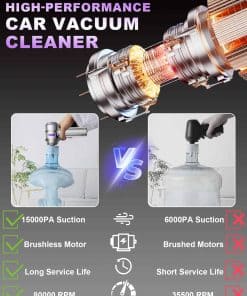 La aspiradora de coche VIEYKEA Handheld Car Vacuum Portable no solo es poderosa en cuanto a succión, sino que también es versátil y conveniente de usar en cualquier lugar. Con 3 niveles de potencia de succión ajustables, puedes elegir la configuración adecuada para limpiar cualquier tipo de suciedad en tu vehículo. Su batería de larga duración te permite limpiar el coche sin tener que preocuparte por recargarla constantemente. Además, con sus accesorios multi-funcionales y diseño compacto e inalámbrico, esta aspiradora es ideal para usuarios con mascotas, niños y coches en casa que necesitan una solución efectiva para mantener su vehículo limpio y ordenado. El motor sin escobillas y la operación de bajo ruido hacen que la limpieza sea una tarea silenciosa y eficiente, sin molestar a tus vecinos ni a tu familia. Además, la facilidad de limpieza y mantenimiento hace que la aspiradora de mano VIEYKEA sea una opción práctica y duradera para tus necesidades de limpieza diaria.