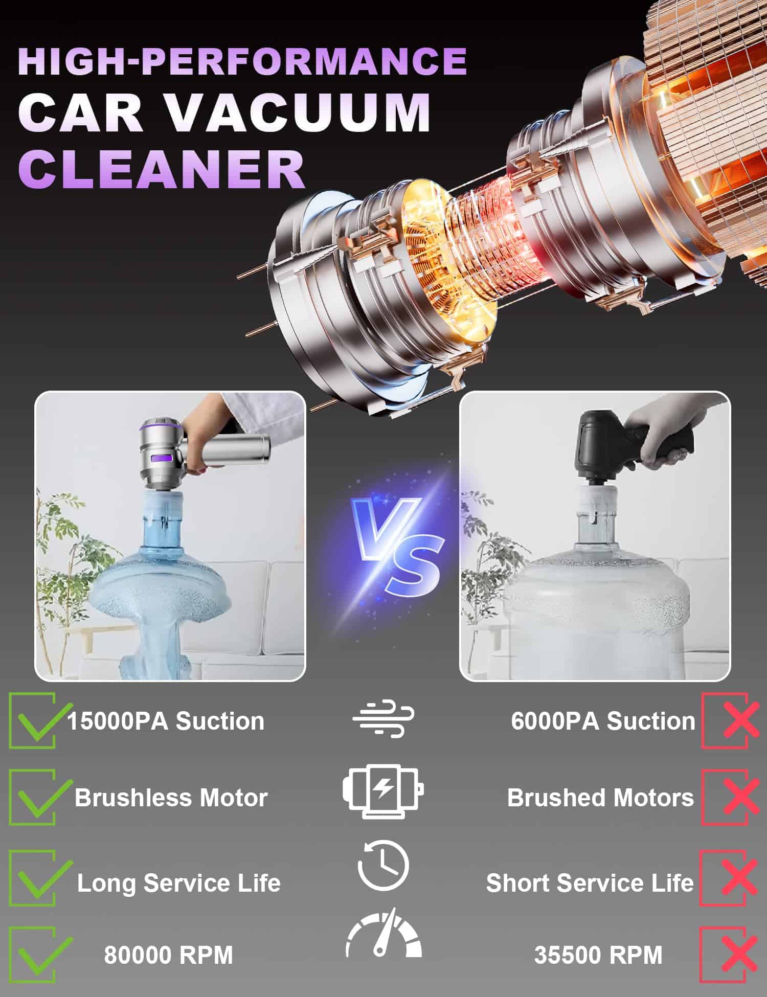 Aspiradora de Mano para Coche VIEYKEA Portátil Inalámbrica,