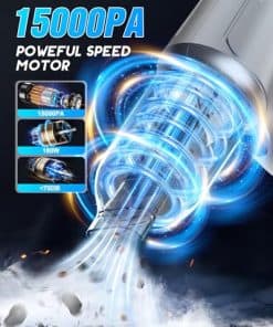 Esta aspiradora de automóvil genera una potencia de succión de 15000pa, lo que le permite eliminar eficazmente la suciedad, el polvo, las migas y el pelo de mascotas de todas las superficies de tu automóvil. Desde alfombras hasta tapicería, esta aspiradora deja los interiores de tu automóvil impecables.