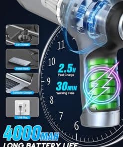 La batería recargable integrada de 4000mAh garantiza que tengas suficiente energía para limpiar tu automóvil de una vez. Con hasta 30 minutos de tiempo de limpieza continuo, puedes darle a tu automóvil una limpieza a fondo sin interrupciones. Cuando sea el momento de recargar, simplemente conecta el cable de carga incluido y dale energía.