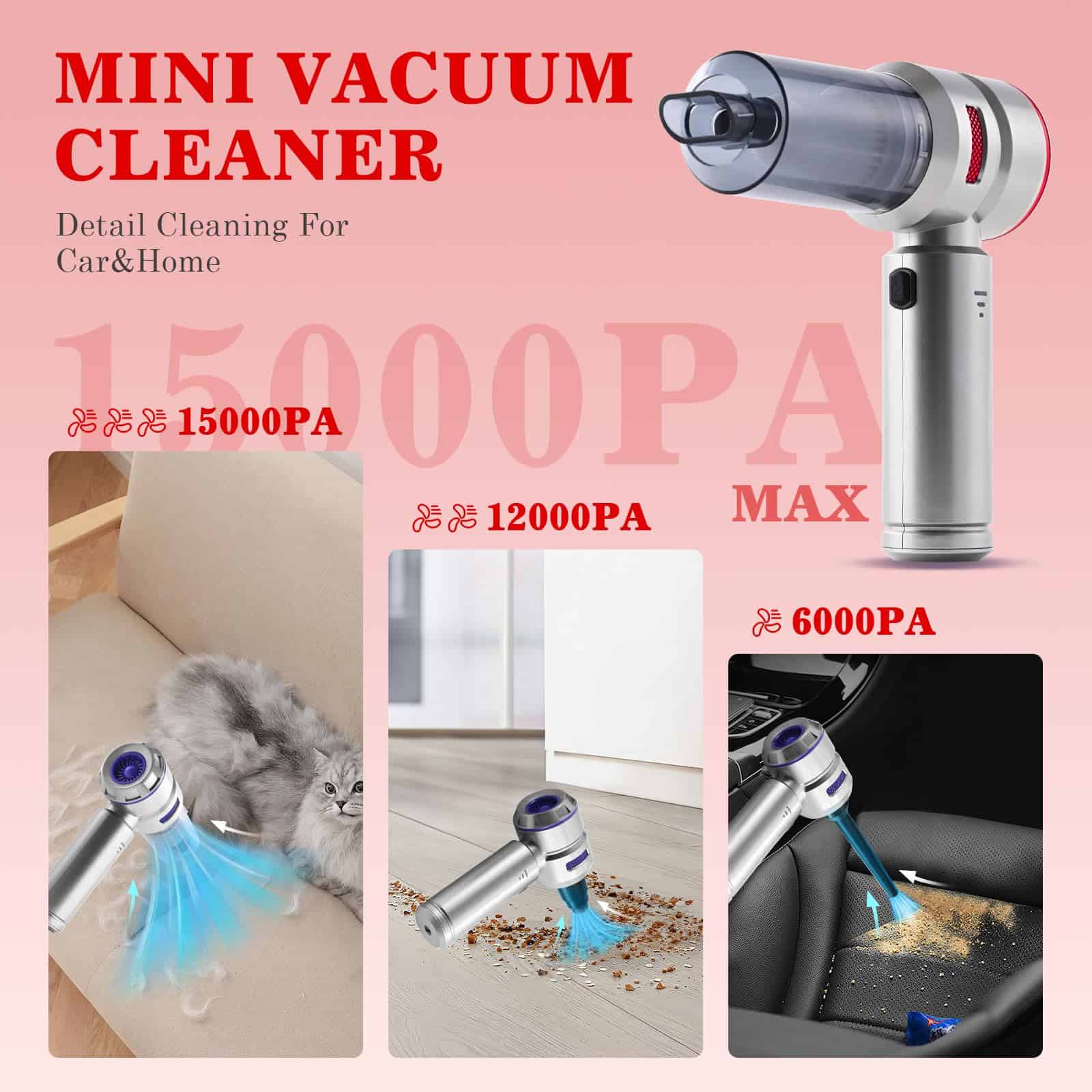 La batería recargable de 2000mAh permite un funcionamiento inalámbrico para la máxima comodidad. Diga adiós a la suciedad y los desechos con la potente succión de esta aspiradora para automóvil tipo torbellino, para que pueda disfrutar de un entorno más limpio y fresco dondequiera que vaya!