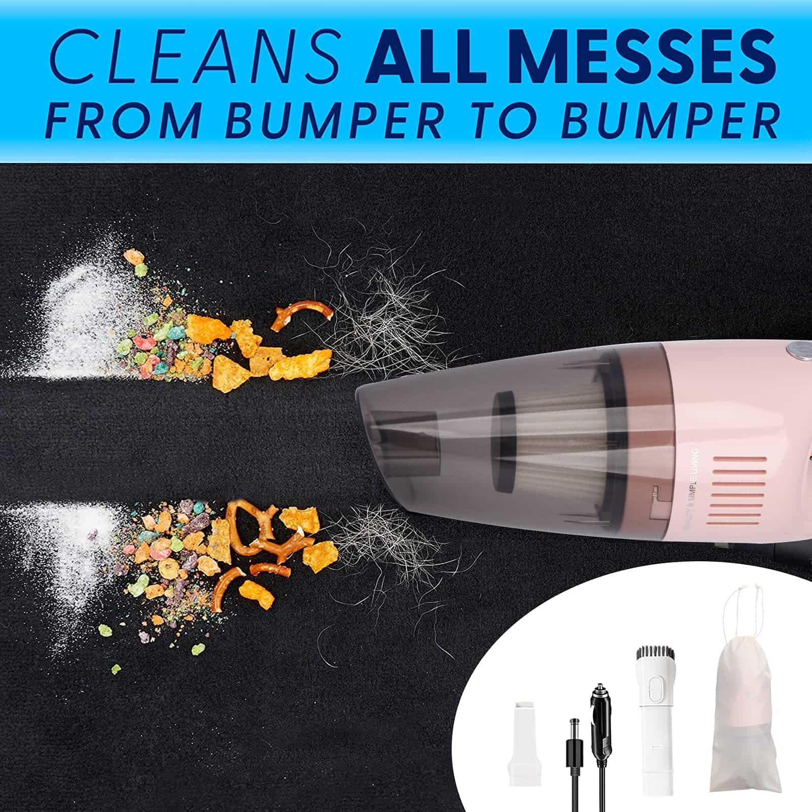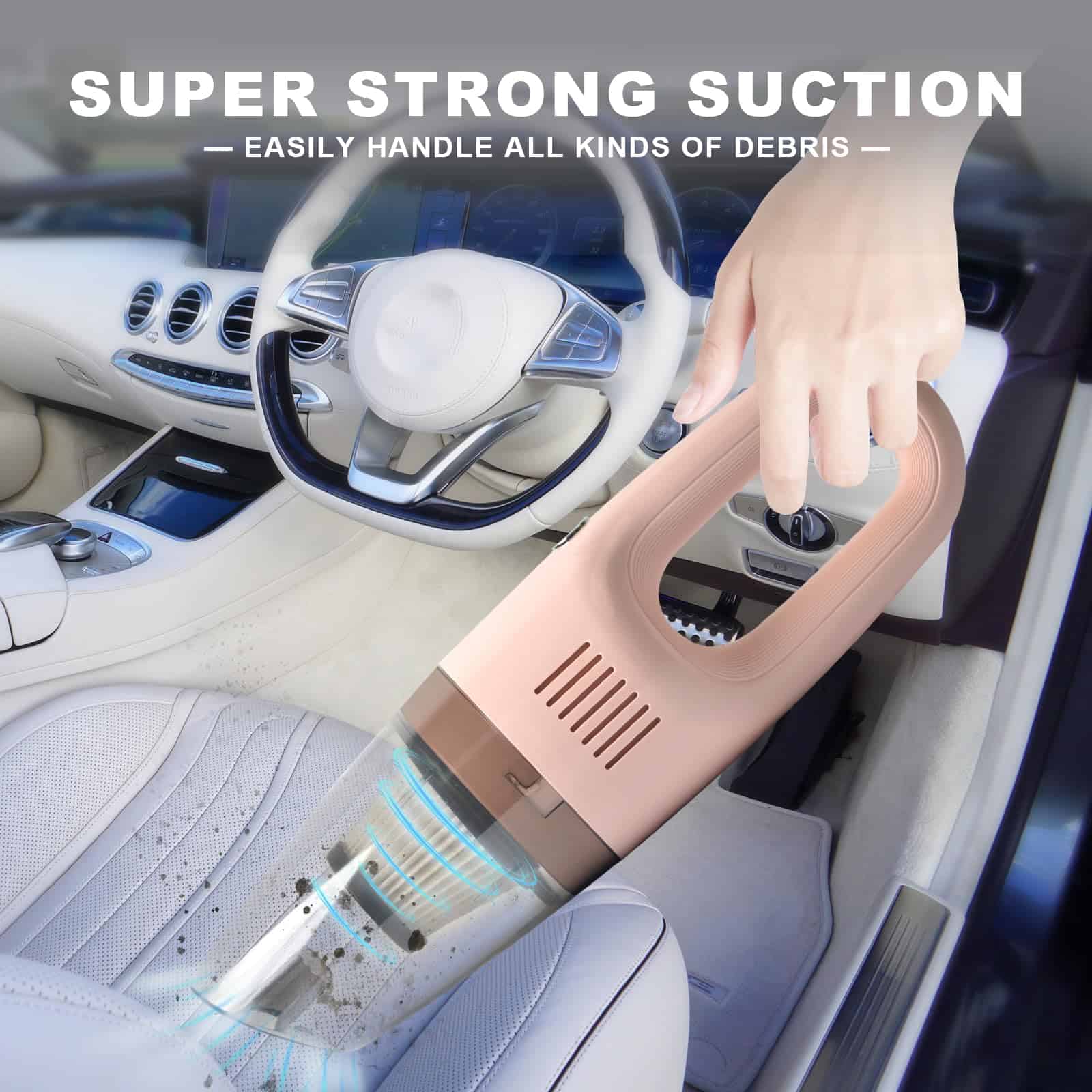 1. Eliminación Efectiva Diseñada para su uso en coches y yates, resolviendo problemas insolubles. ¿Tuvo un día muy arenoso en la playa? ¿Dónde están los pelos de perro? La Aspiradora de Coche con Cable Rosa está diseñada para resolver este problema. 2. Eficiente y práctica Pequeña, ligera (1.4 lbs) y fácil de usar, aspiradora de coche o camión portátil, de gran capacidad, lista para manejar cenizas, polvo o derrames de alimentos, kit de detalle interior totalmente cargado diseñado ergonómicamente. 3. Aspirado Potente La fuerza ciclónica y la potente succión del motor de 120w absorben todo el polvo o los residuos; dile adiós a las migas que se quedan atrapadas debajo del asiento del conductor. Nuestra mini aspiradora para coche incluso tiene un filtro HEPA reutilizable en la parte superior. 4. Kit de Limpieza Interior del Coche Incluido Viene con 3 accesorios: una boquilla plana extendida, un cepillo de boquilla plana para alfombras y componentes de pelo (absorbiendo de forma flexible partículas de polvo) y un cable de 15 pies. Deben tener accesorios para coche para hombres y mujeres; estos gadgets mantendrán el interior ordenado. 5. Fácil de usar ¿Preocupado de que su batería siempre esté muerta cuando necesita una aspiradora para coche? Estos accesorios de camión para hombres y mujeres utilizan un enchufe auxiliar de 12v para la energía. Con 16 pies de cable, obtendrá la holgura que necesita para limpiar su asiento trasero o maletero sin problemas.
